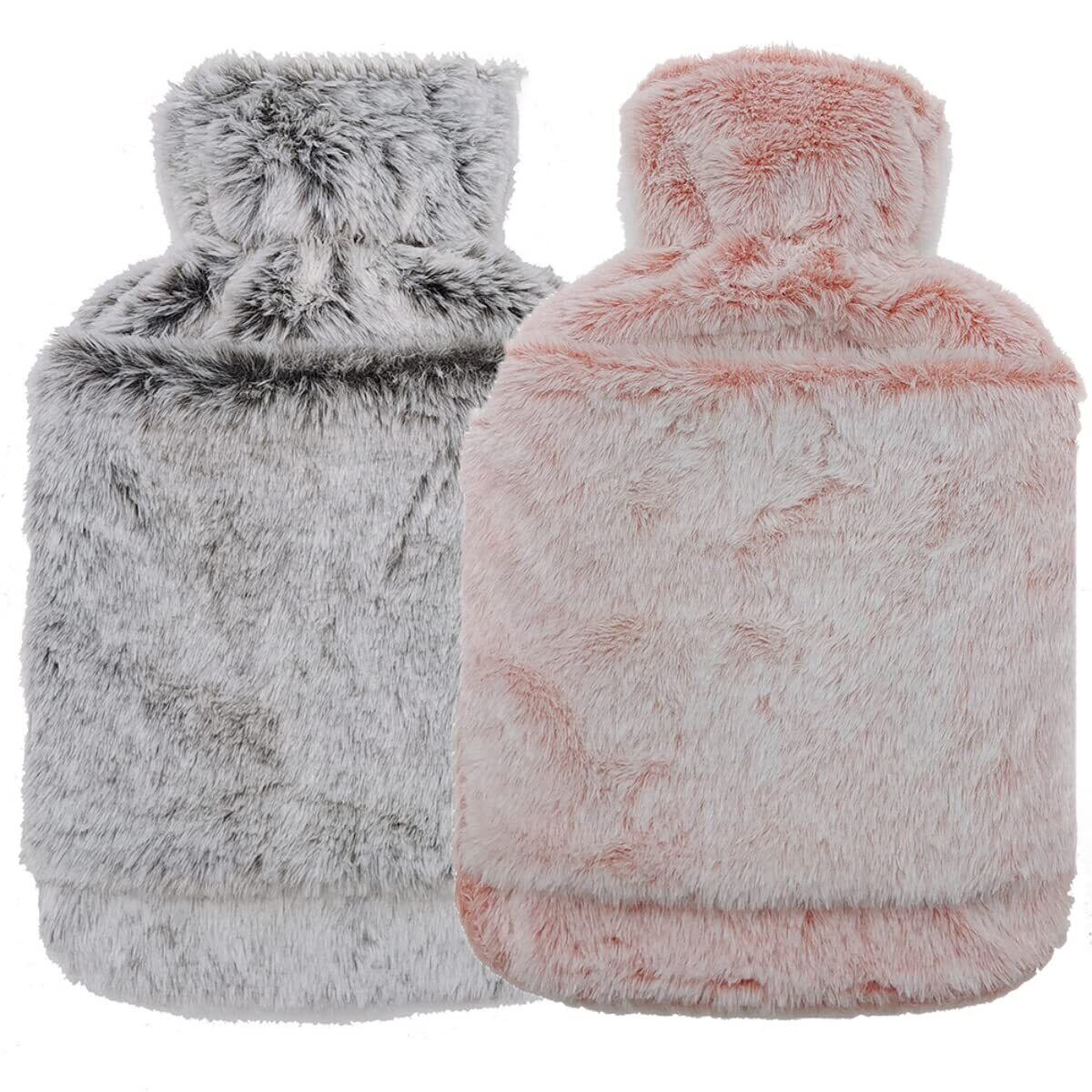 CANEOV 湯たんぽ 注水式 容量2L お湯入れ 秋冬防寒対策 かわいい カバー付き フワフワ ゆたんぽ 暖かい クリスマス ギフト (グレー)
