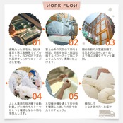リ・ニューダウン85%(ダウン率85%、350ダウンパワー以上)を詰め物にしています。【リ・ニューダウンとは?】リ・ニューダウン(Re:New Down)は、新しい羽毛と再生羽毛(アップサイクルダウン)を混合したハイブリッドなダウンです。日本国内の工場で一貫精製しているので清潔で安心! 羽毛の輸入量は、世界的な環境と食の変化による水鳥の飼育数減少から年々減少しており、資源としての希少性は増し続けています。羽毛のサスティナビリティに富んだ性質を引き出し、製品の品質を損なわずに羽毛の長所を発揮できるよう混ぜ合わせたものが リ・ニューダウン(Re:New Down)です。