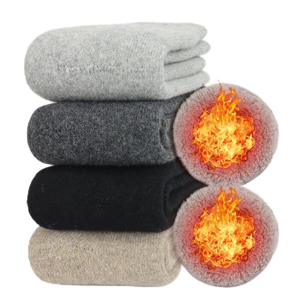 【特価商品】[APIKIE] 靴下 レディース 冬 ソックス 極暖38℃恒温蓄熱・肉厚裏パイル・ウール30%以上(鑑定済み) ウールソックス 暖かい 防寒保温 蒸れず 伸縮性 もこもこ靴下 男女兼用 くつした厚手 スキー 室内 22-26cm 4足/6足 | nico3588