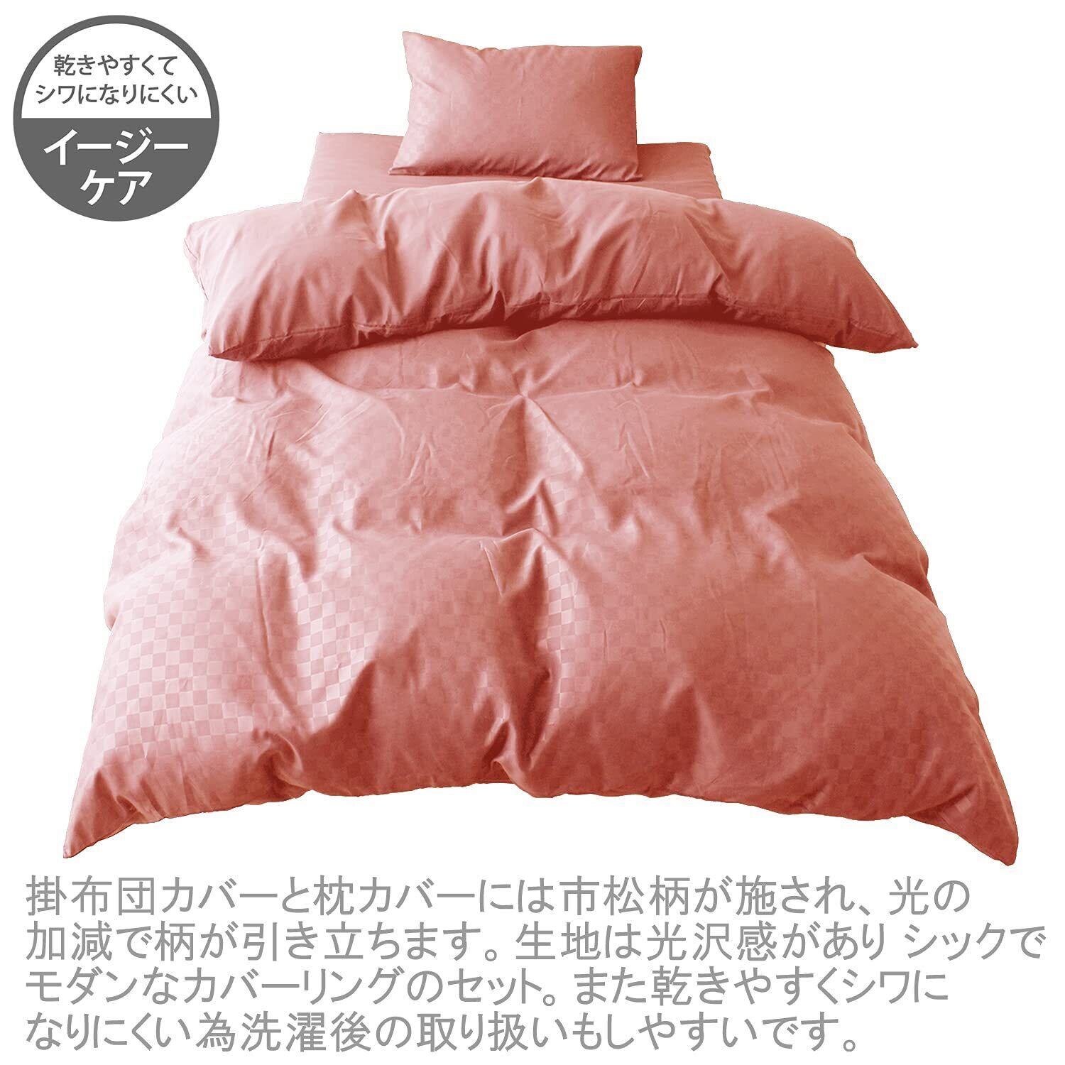 カバーは単色ですが光の加減で市松柄が現れるモダンテイストの布団カバー。和洋室どちらの部屋にもOK。シンプル、クールなベッドルームを演出します。【掛カバー】・・・表面型押し市松柄入り・裏面無地カラー、 【敷カバー】・・・両面無地カラー、【枕カバー】・・・両面型押し市松柄入り。【内容】150x210cm(シングルロングサイズ)用の掛布団カバ-、100x210cm(シングルロングサイズ)用の敷布団カバー、43x63cm用の枕カバーの3点セット。※ご使用の布団、枕のサイズを御確認下さい。
