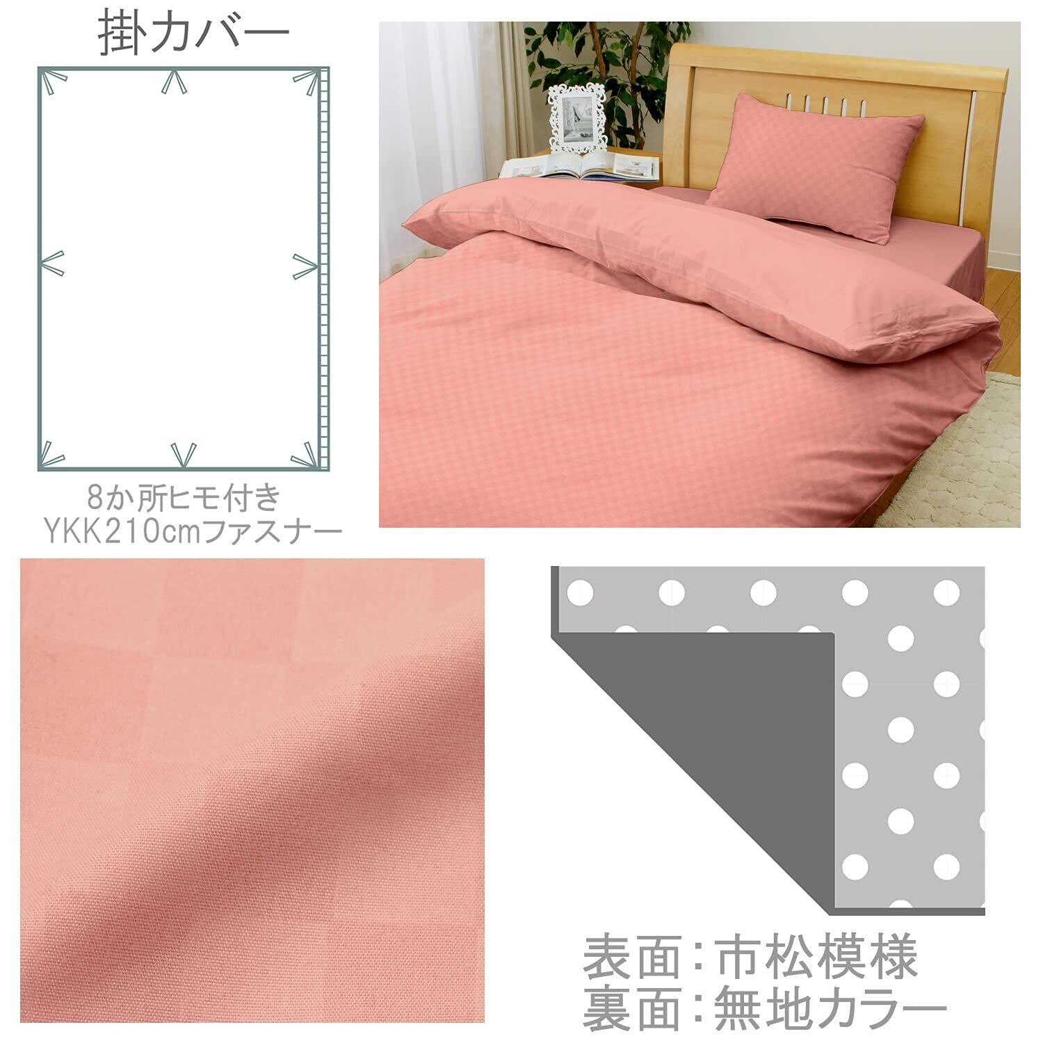 掛布団カバーの内側は8か所ヒモ付き。布団とつなげて使用中のズレ防止。<br>掛・敷布団カバーは布団の出し入れがしやすい片側全開ファスナー。<br>枕カバーは合わせ式。(ファスナー無)