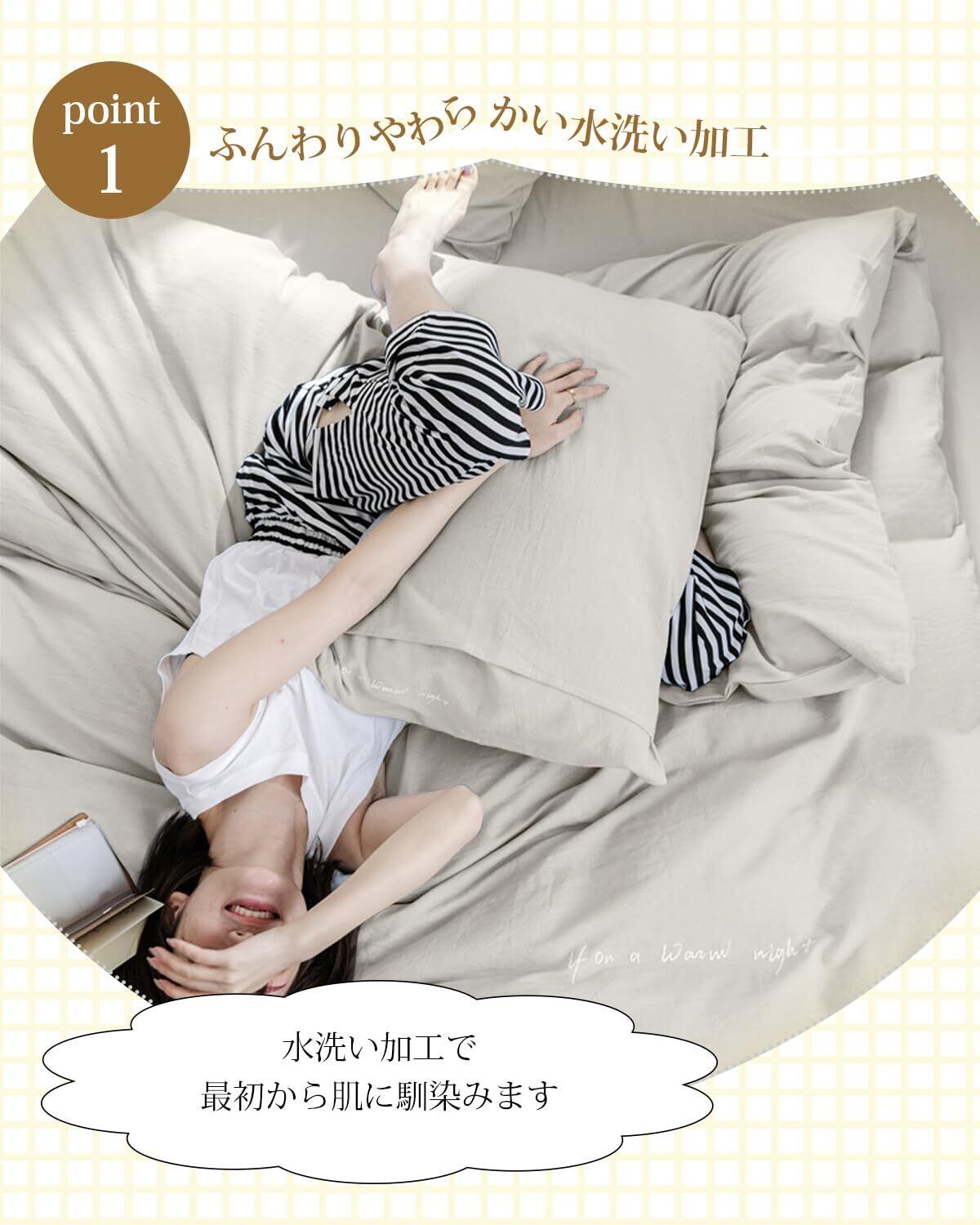 高密度生地·オールシーズン快適」高密度織りの生地を厳選して、丁寜な縫製で長期間の使用にも耐える顽丈な仕上がりです。通気性が良くて、吸湿性と保温性に優れていることから、年間を通して快適な生地です。洗いさらし加エによって、生地の良い特性を保ちながら、縮みやすいデメリットも改善できるようになります。