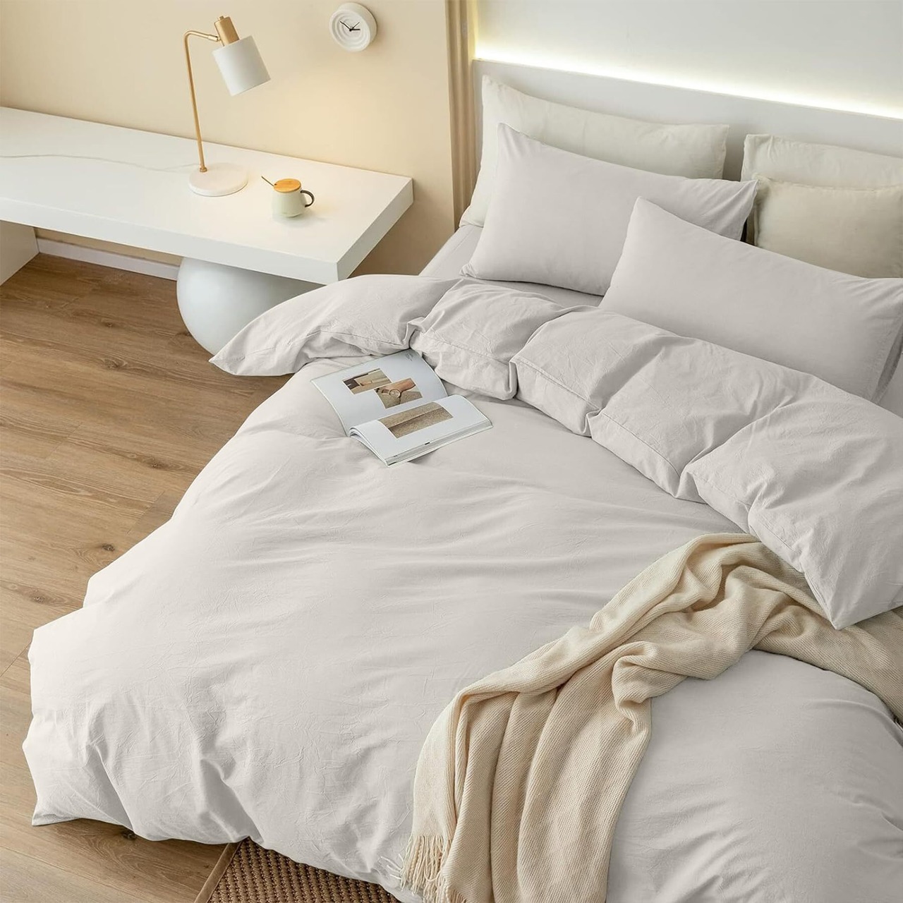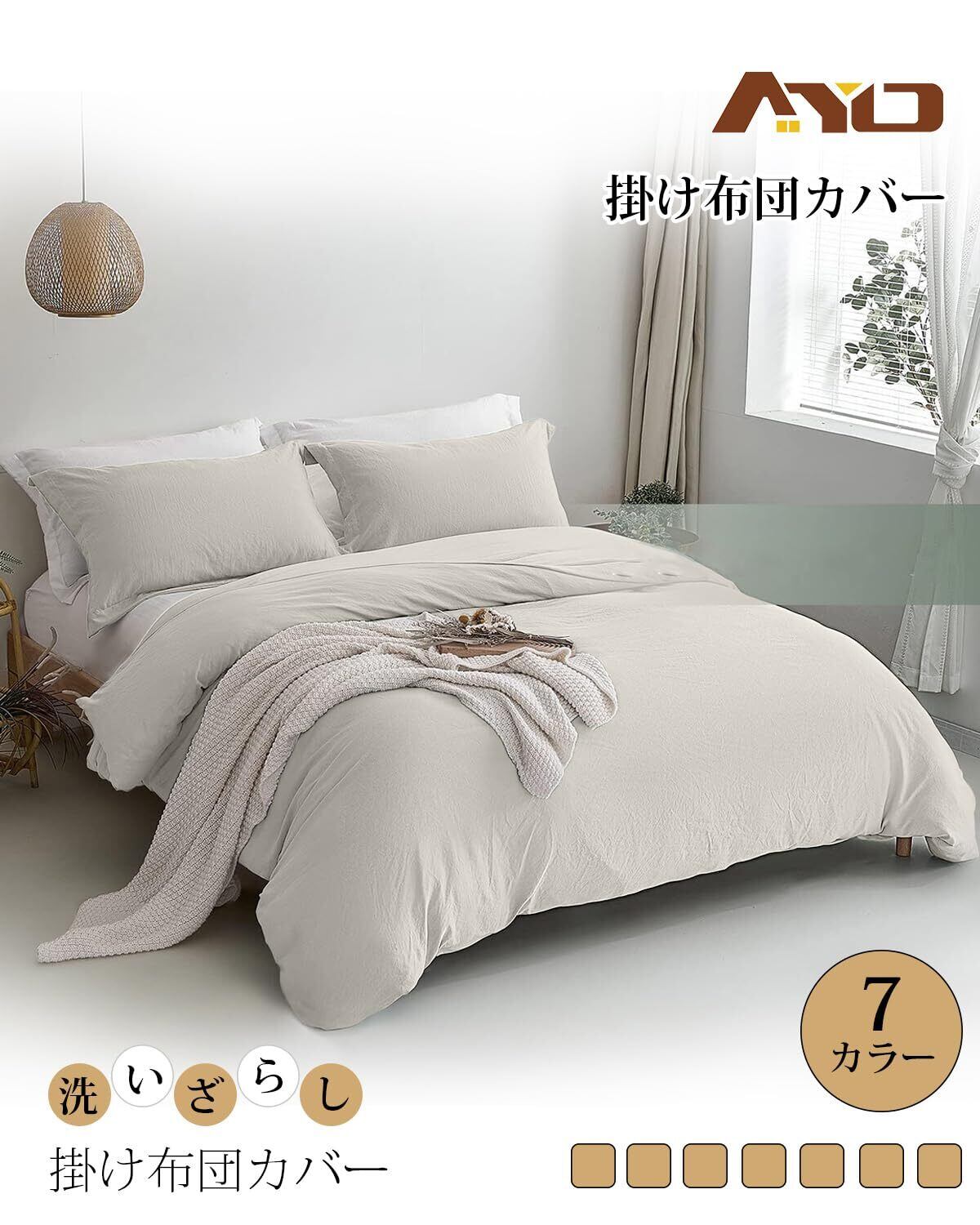 AYO(エイワイオー) 掛け布団カバー シングル 洗いざらし 超柔らかい オールシーズン ダブルファスナー シワ加工 ピーチスキン 布団カバー 吸水速乾 丸洗いOK 肌に優しい 無地 かけふとんカバー(150X210cm·グレー)