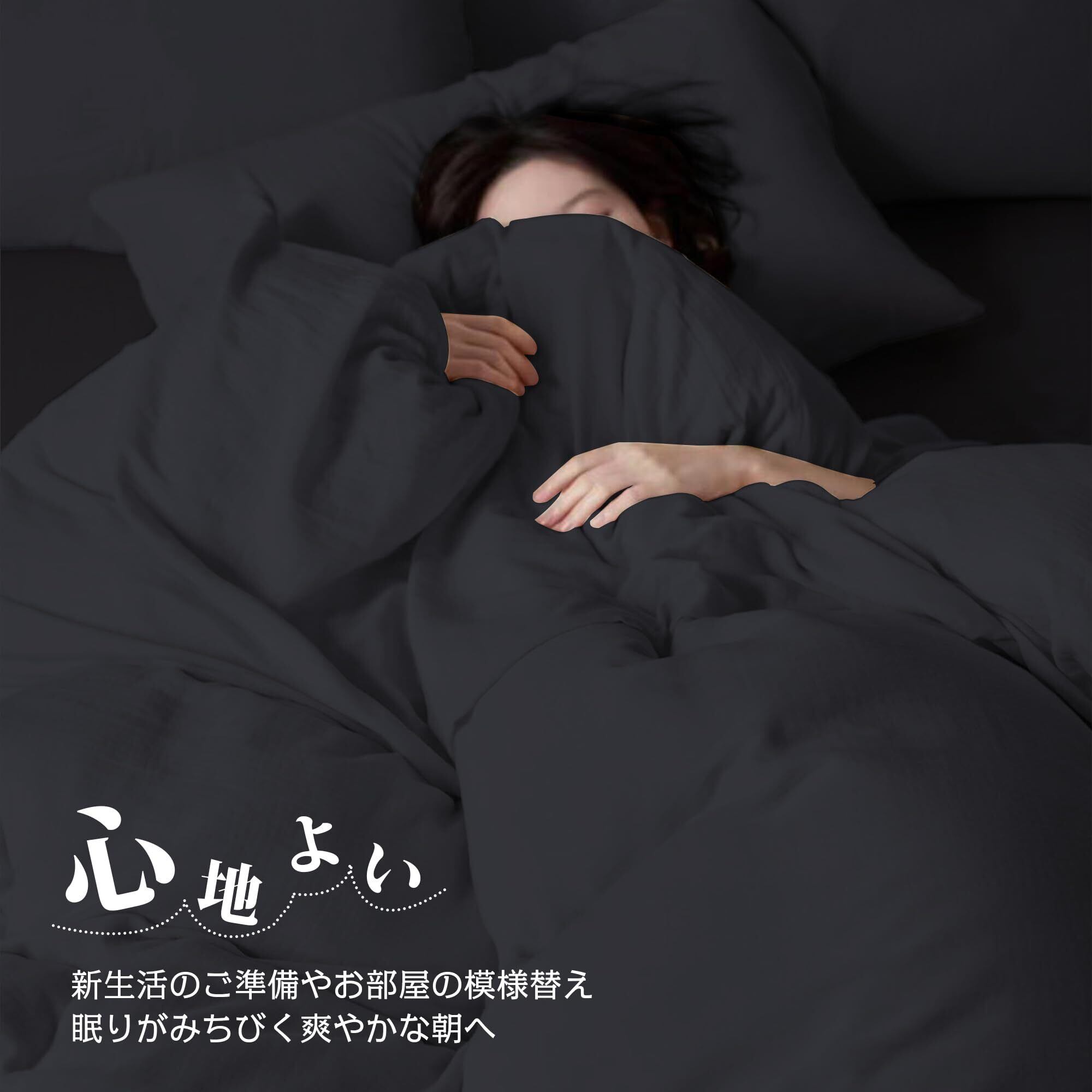 【新春セール】AYO 掛け布団カバー シングル しっとり柔らか 長く使える 摩擦耐久性 生地の縮みや型崩れ防止に 乾きやすい 速乾 ベタつき・ムレ防止で夏も快眠 オールシーズン 丸洗いOK(ブラック シングル・150X210cm)