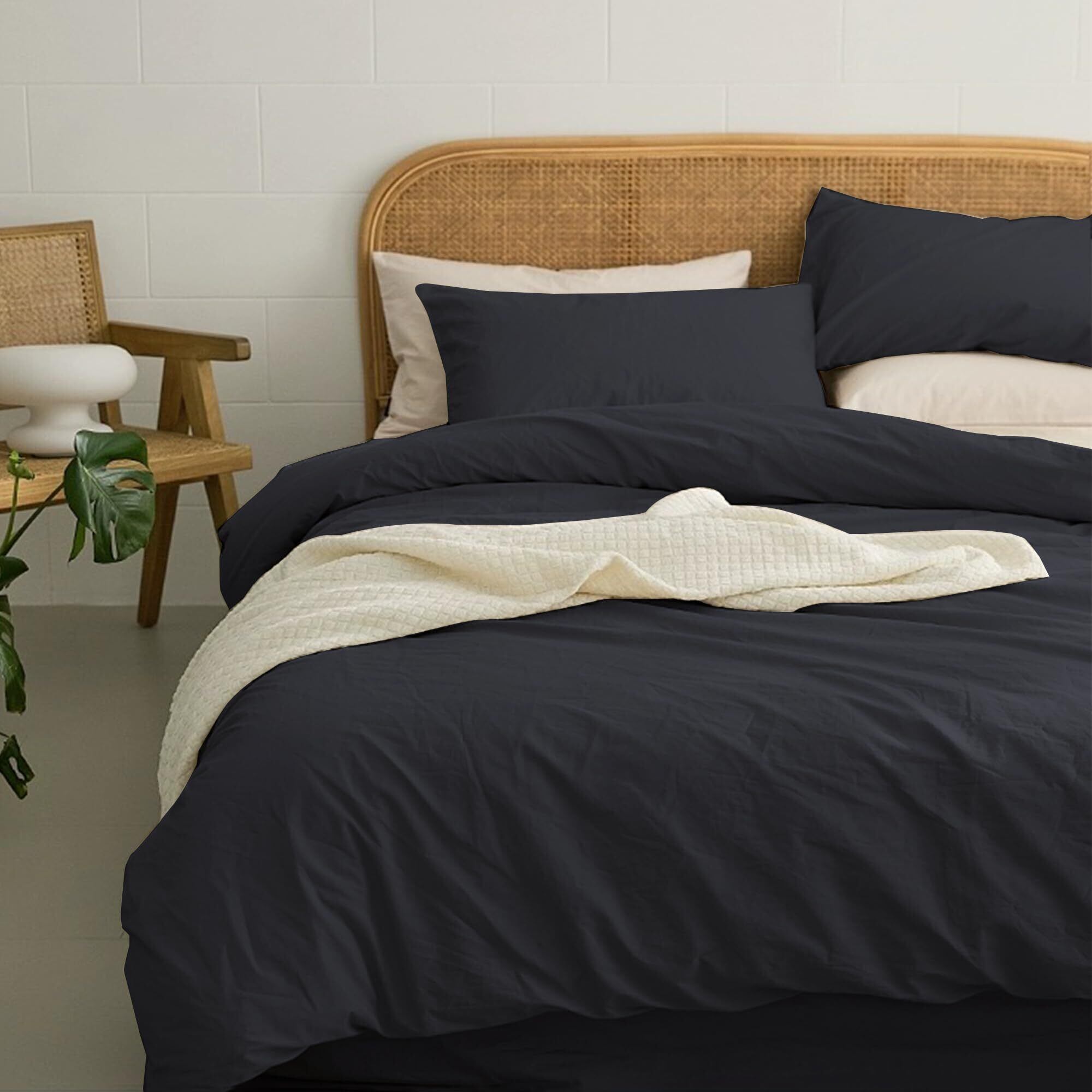 AYO 掛け布団カバー シングル しっとり柔らか 長く使える 摩擦耐久性 生地の縮みや型崩れ防止に 乾きやすい 速乾 ベタつき・ムレ防止で夏も快眠 オールシーズン 丸洗いOK(ブラック シングル・150X210cm)