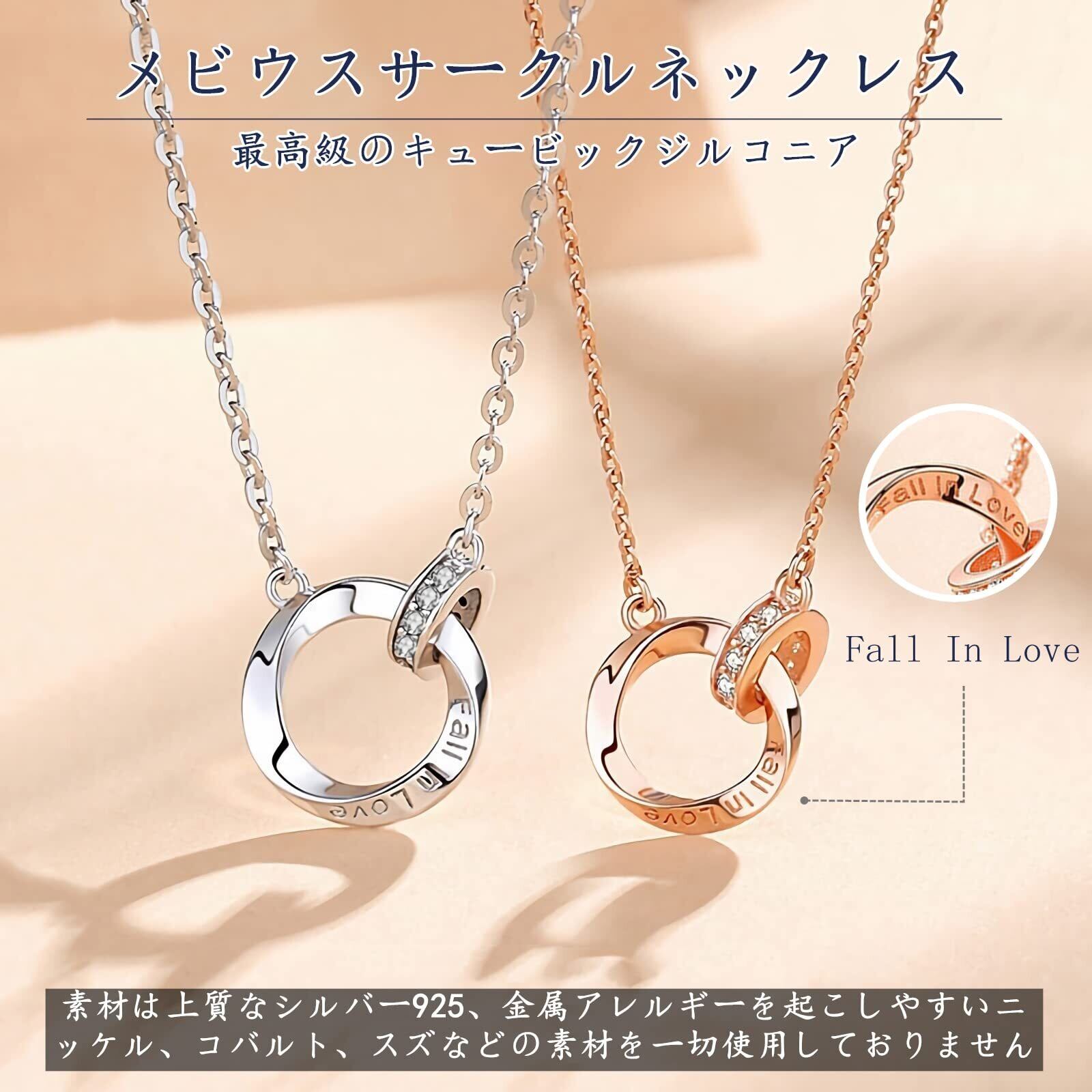 [Mieduaxy] ネックレス レディース 人気 メビウスネックレス ダブルリング/ハートの形 ファッションデザイン 最高級のキュービックジルコニア S925 ペンダント 金属アレルギー対応 クリスマス チタン 誕生日 プレゼント 女性 K18金 カップル 記念日 プレゼント Fall in Love/Ti Amo(愛してます イタリアの) レタリング