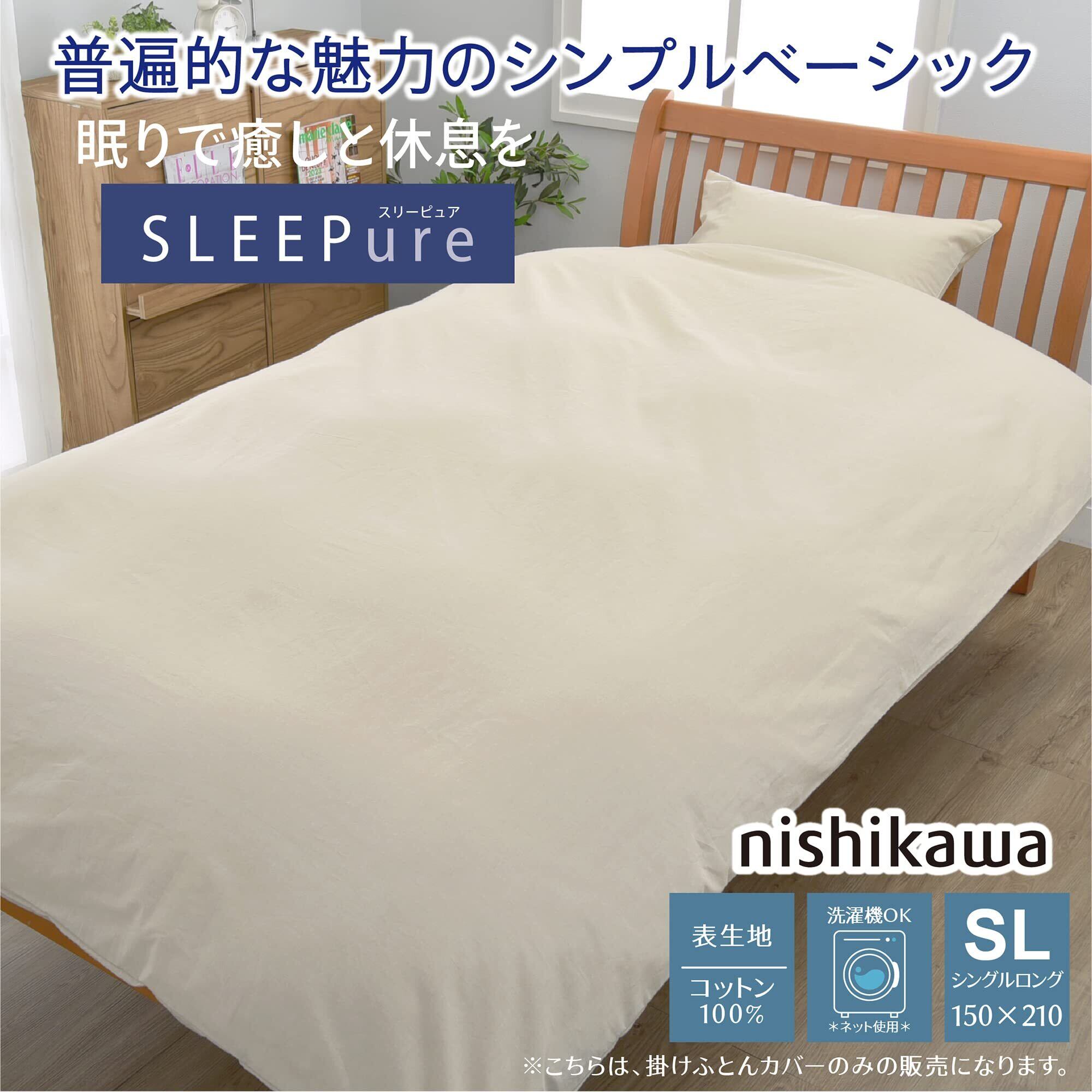 nishikawa 【 西川 】掛け布団カバー シングル 洗える お肌に優しい肌触りの綿100% 10か所ひも付き 先染め仕様 無地 スリーピュア 寝具 ベージュ SI03400003