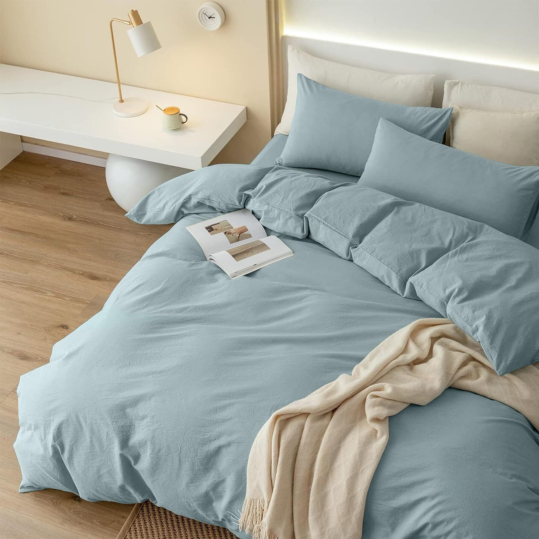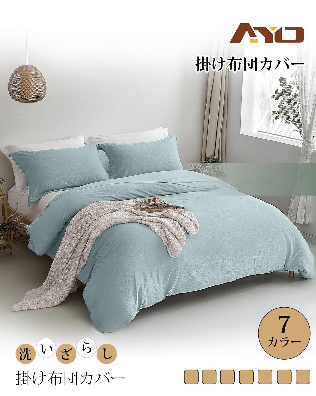 AYO(エイワイオー) 掛け布団カバー シングル 洗いざらし 超柔らかい オールシーズン ダブルファスナー シワ加工 ピーチスキン 布団カバー 吸水速乾 丸洗いOK 肌に優しい 無地 かけふとんカバー(150X210cm·ブルー)