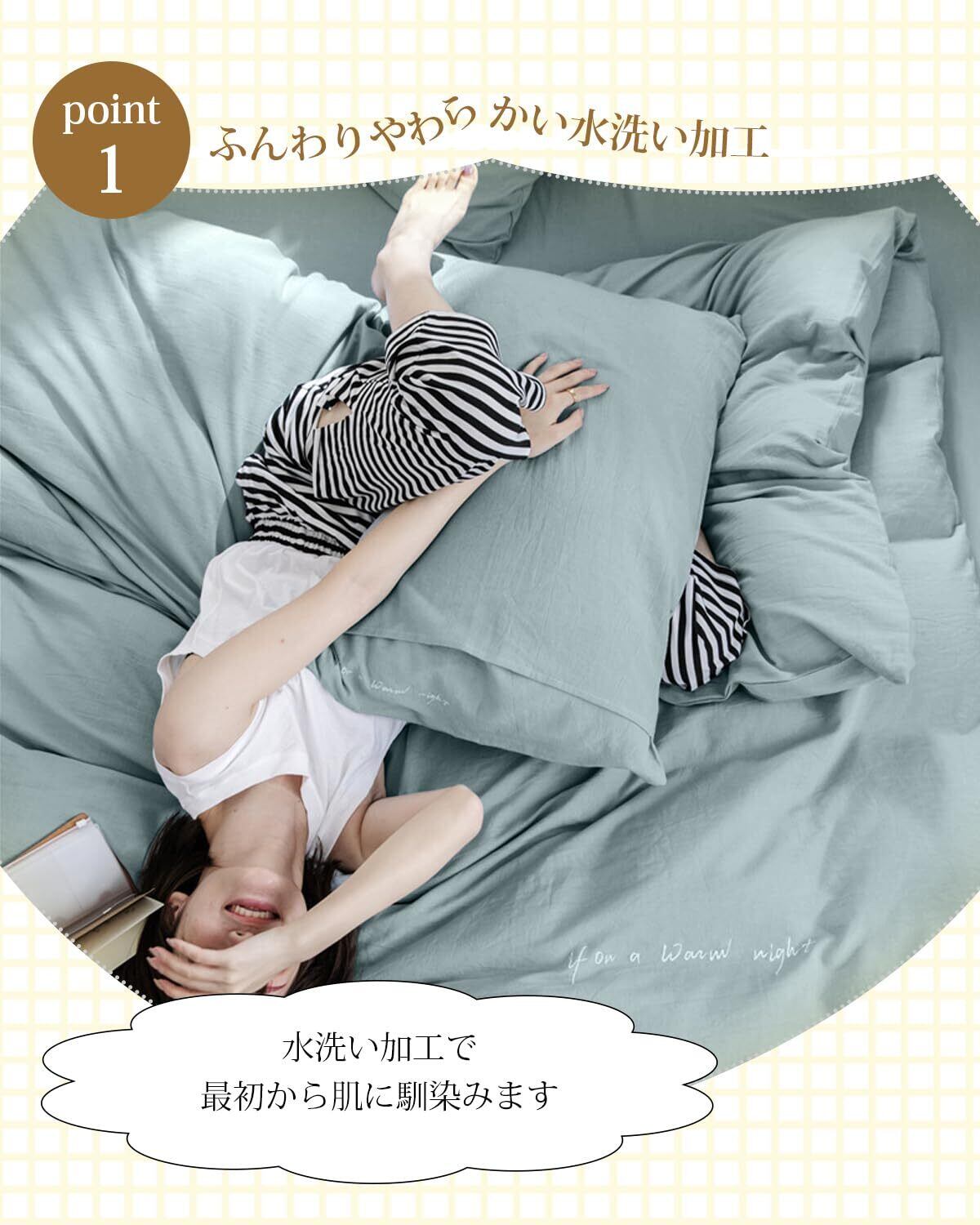 高密度生地·オールシーズン快適」高密度織りの生地を厳選して、丁寜な縫製で長期間の使用にも耐える顽丈な仕上がりです。通気性が良くて、吸湿性と保温性に優れていることから、年間を通して快適な生地です。洗いさらし加エによって、生地の良い特性を保ちながら、縮みやすいデメリットも改善できるようになります。
