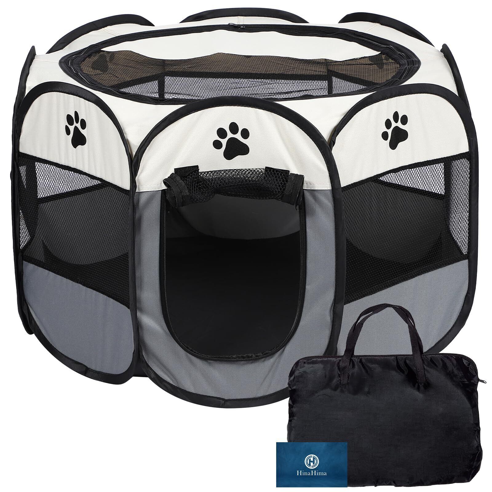 HinaHima 折りたたみ式 ペットサークル 収納バッグ付き 組み立て不要 猫 犬用 ケージ 幅74cm×高さ43cm (M, グレー)