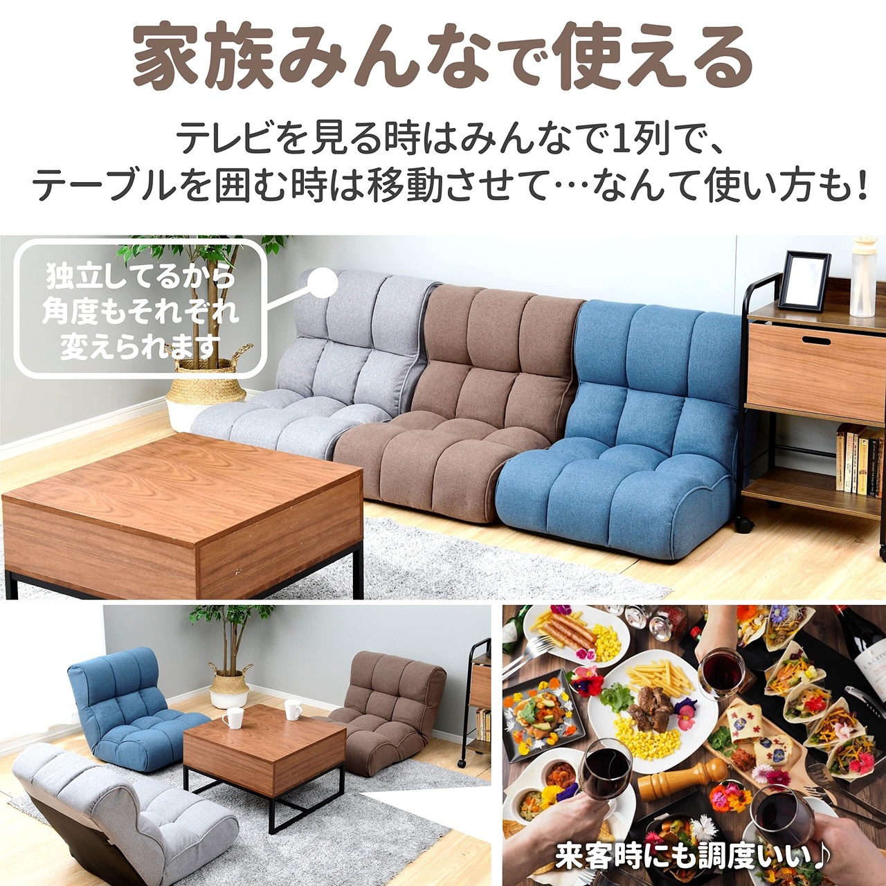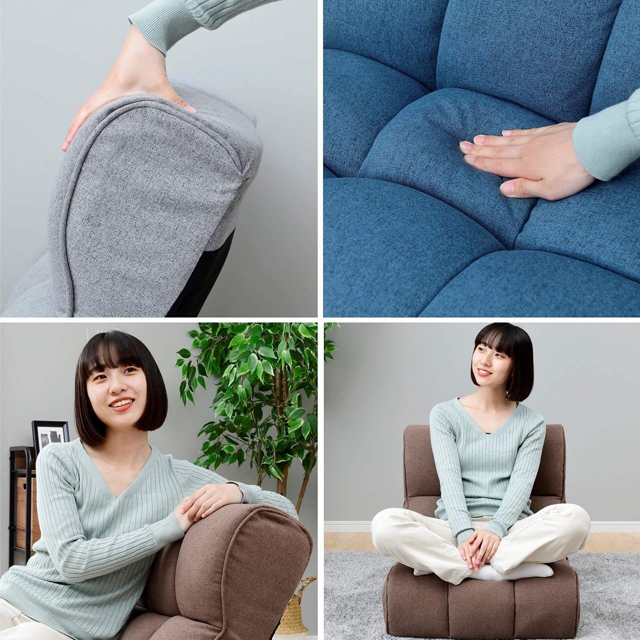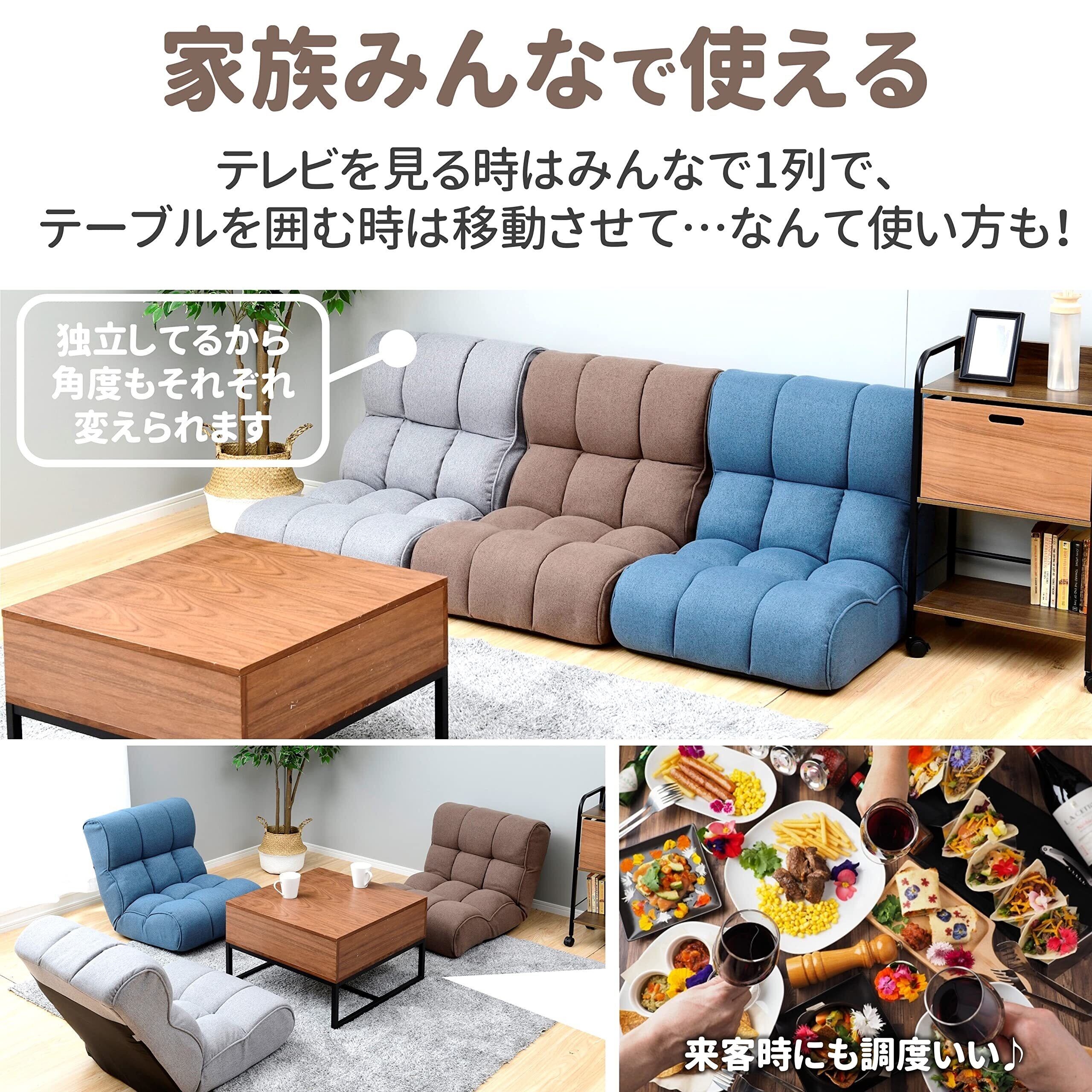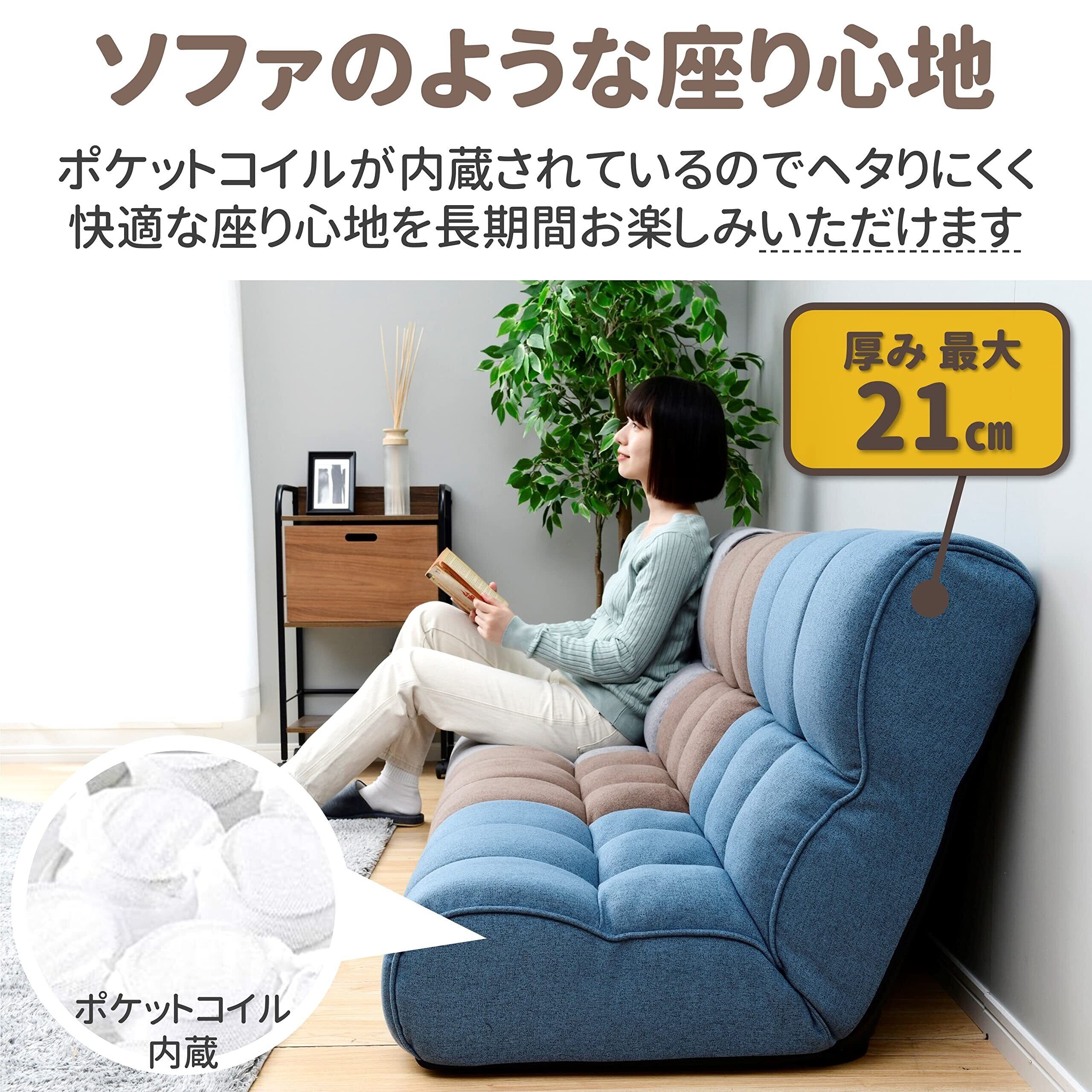 座面は最大21㎝の厚みがあり、座椅子の域を超えた「一人掛けローソファー」のような使い心地をお楽しみいただけます。