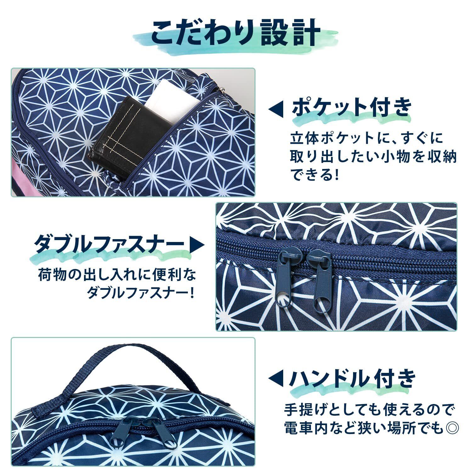 このエコバッグは、日本の伝統的な麻の葉柄を採用し、おしゃれで個性的なデザインが魅力です。普段の買い物やお出かけの際に、周りの目を引くこと間違いなし!シンプルなデザインと耐久性のある素材は、どんなスタイルにもマッチします。