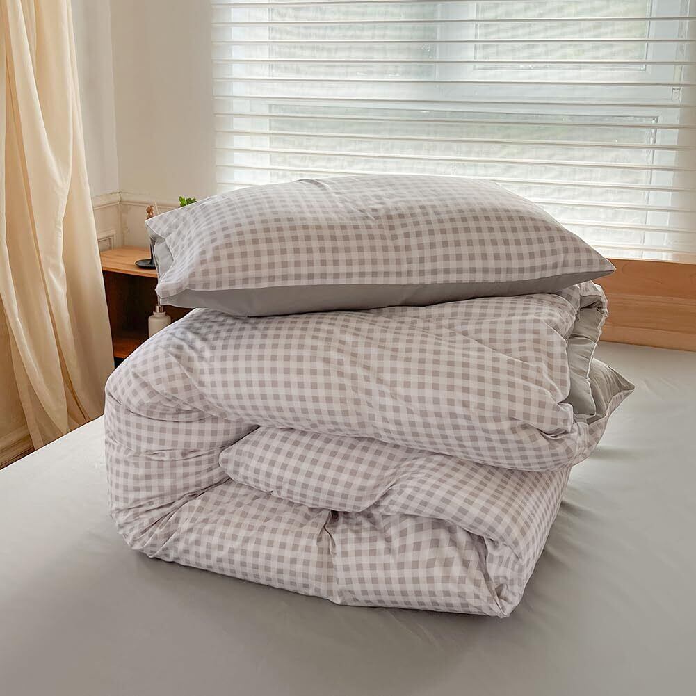 NSNLGSGC 布団カバー 3点セット シングル 布団かばー ベットカバー セット グレー チェック 柄 北欧 洋式・和式兼用 8ヶ所ヒモ付き 洗い替え速乾 防ダニ