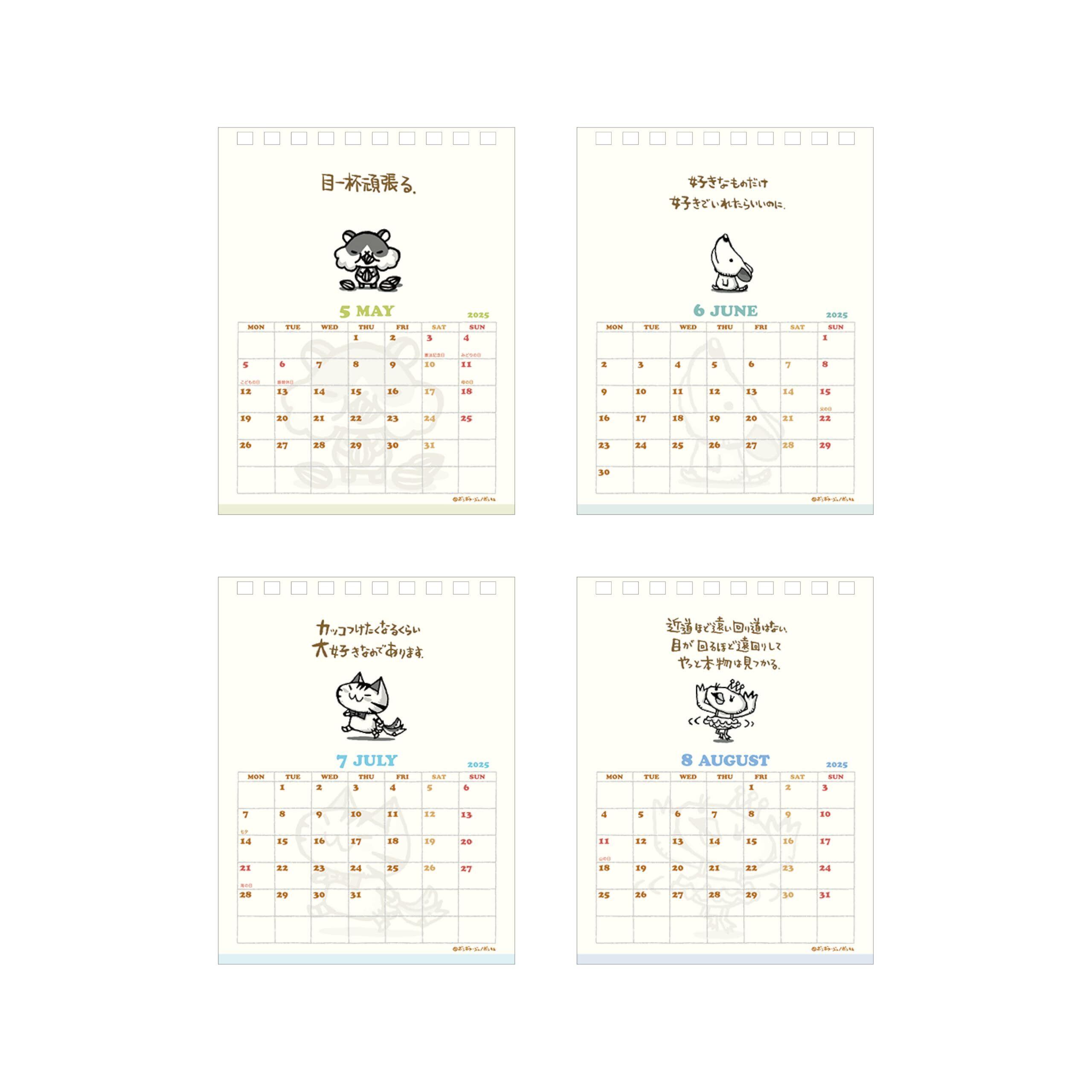 【特長】ほっこりキャラと一言メッセージが毎月楽しめるデザイン