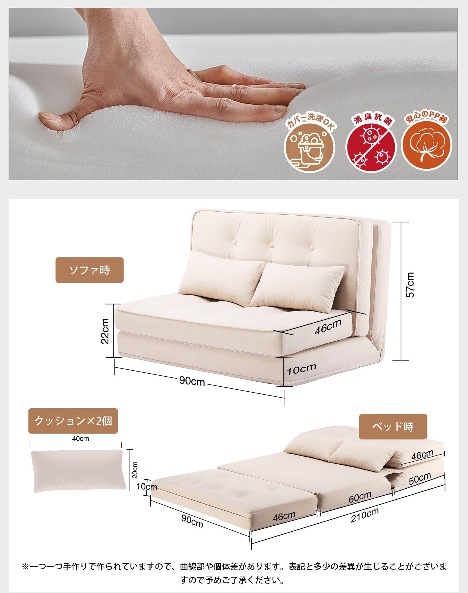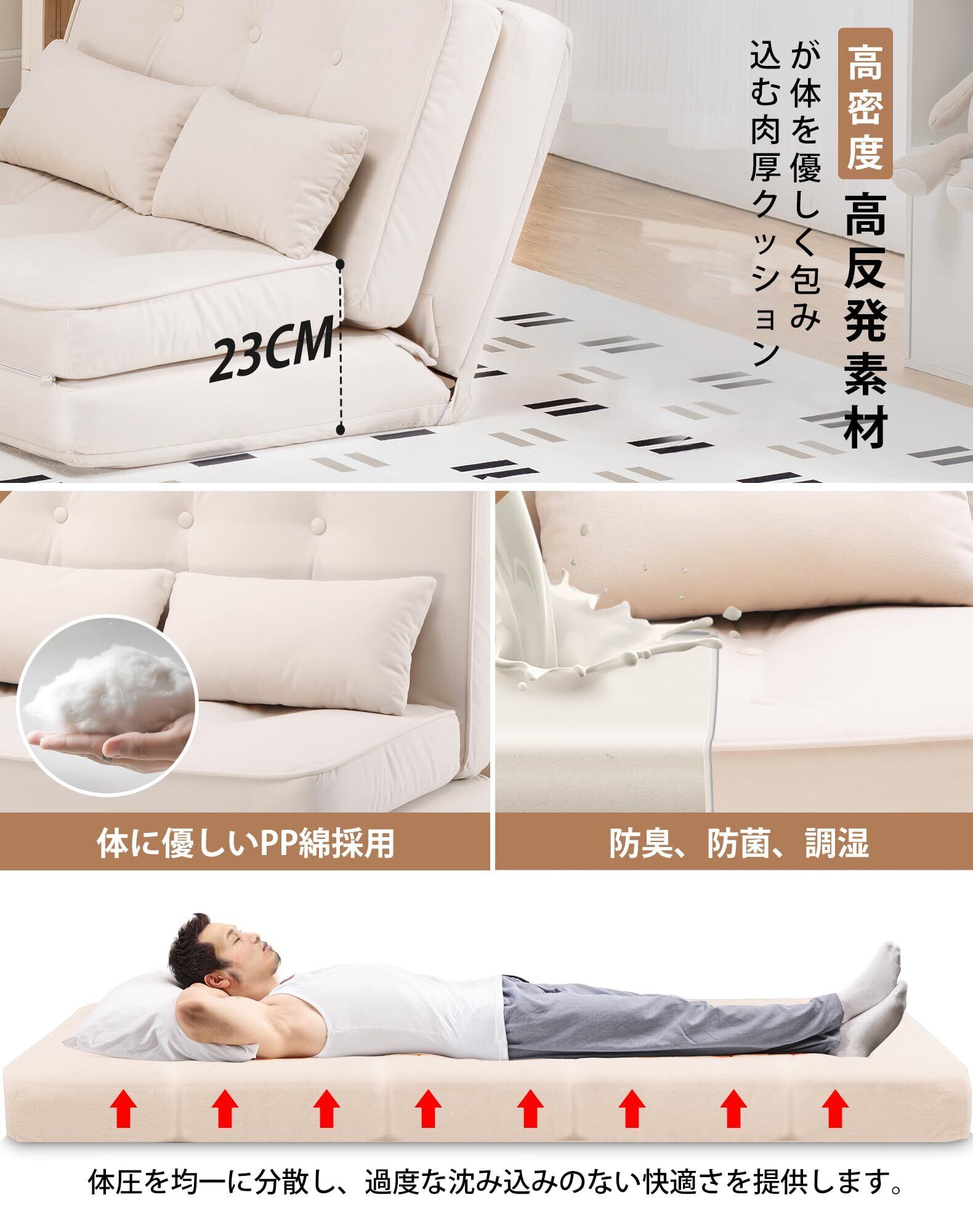 【快適な座り心地】壁に寄りかからずとも、しっかりと体を支えることができます。優れたスポンジを使用しており、まるでビーチで寝転がっているような感覚を楽しめます。インテリアに最適なカラーで、お部屋にぴったりなソファーベッドです。快適さと丈夫さを兼ね備えています。