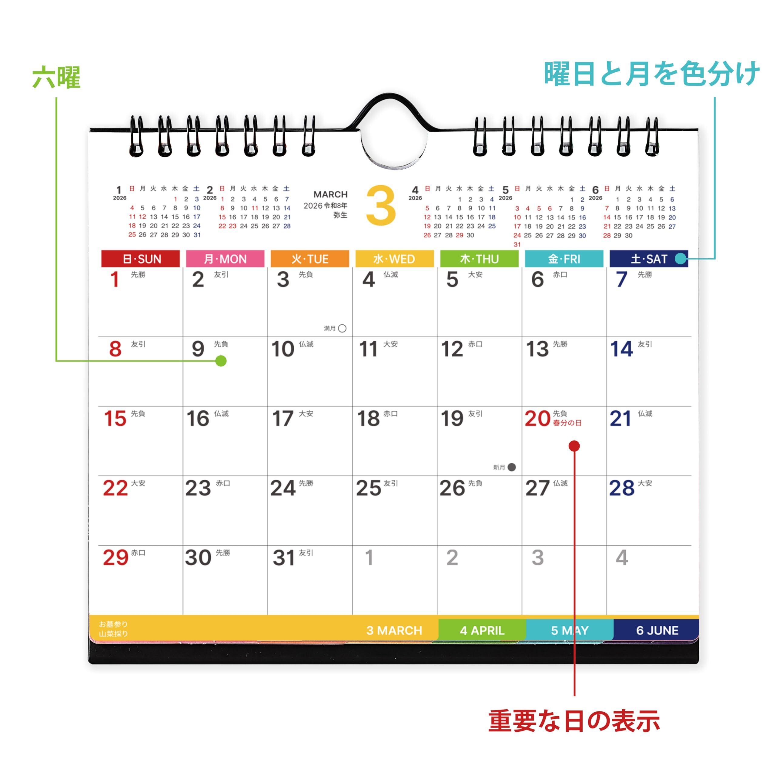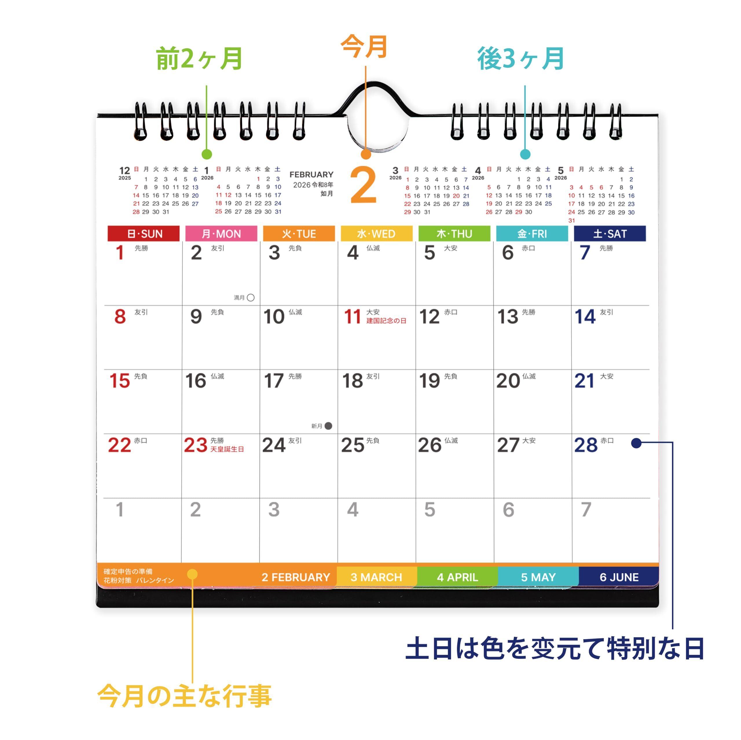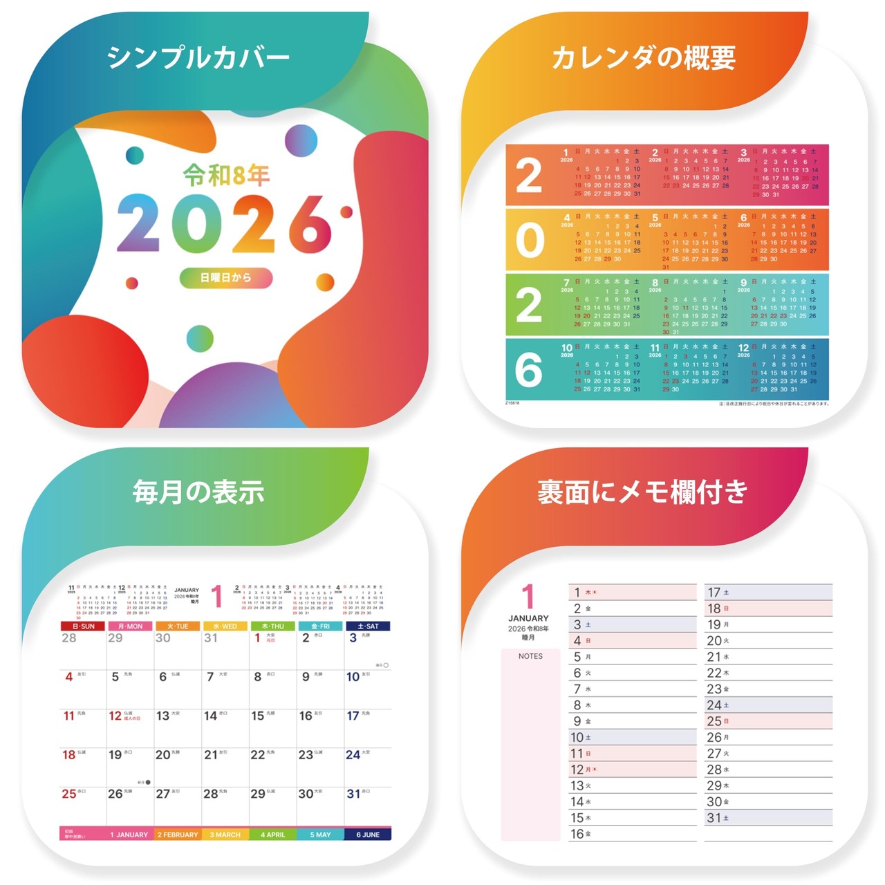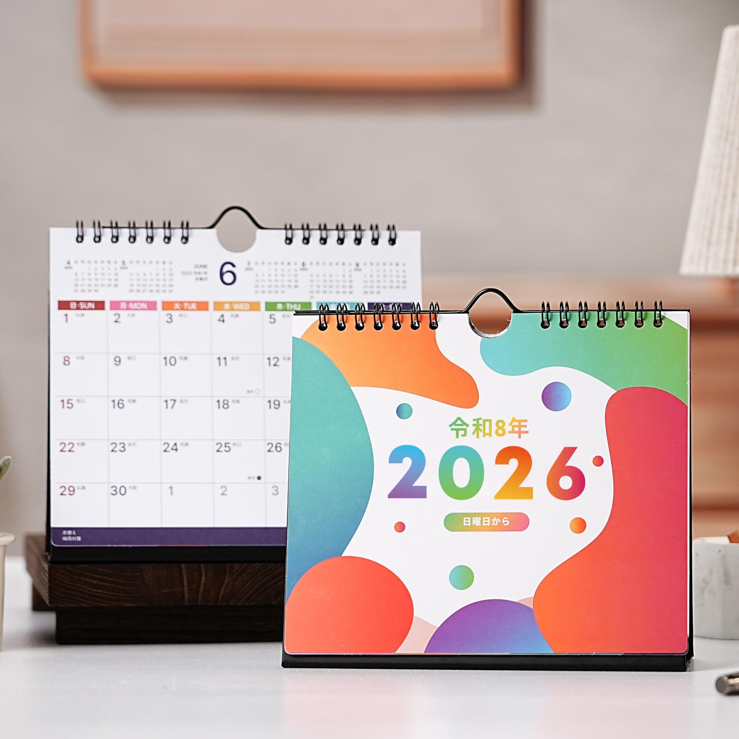 2026年 卓上カレンダー【2026年1月-2026年12月】 実用的 180×150mmサイズ 壁掛・卓上両用 年表付 (日曜日)