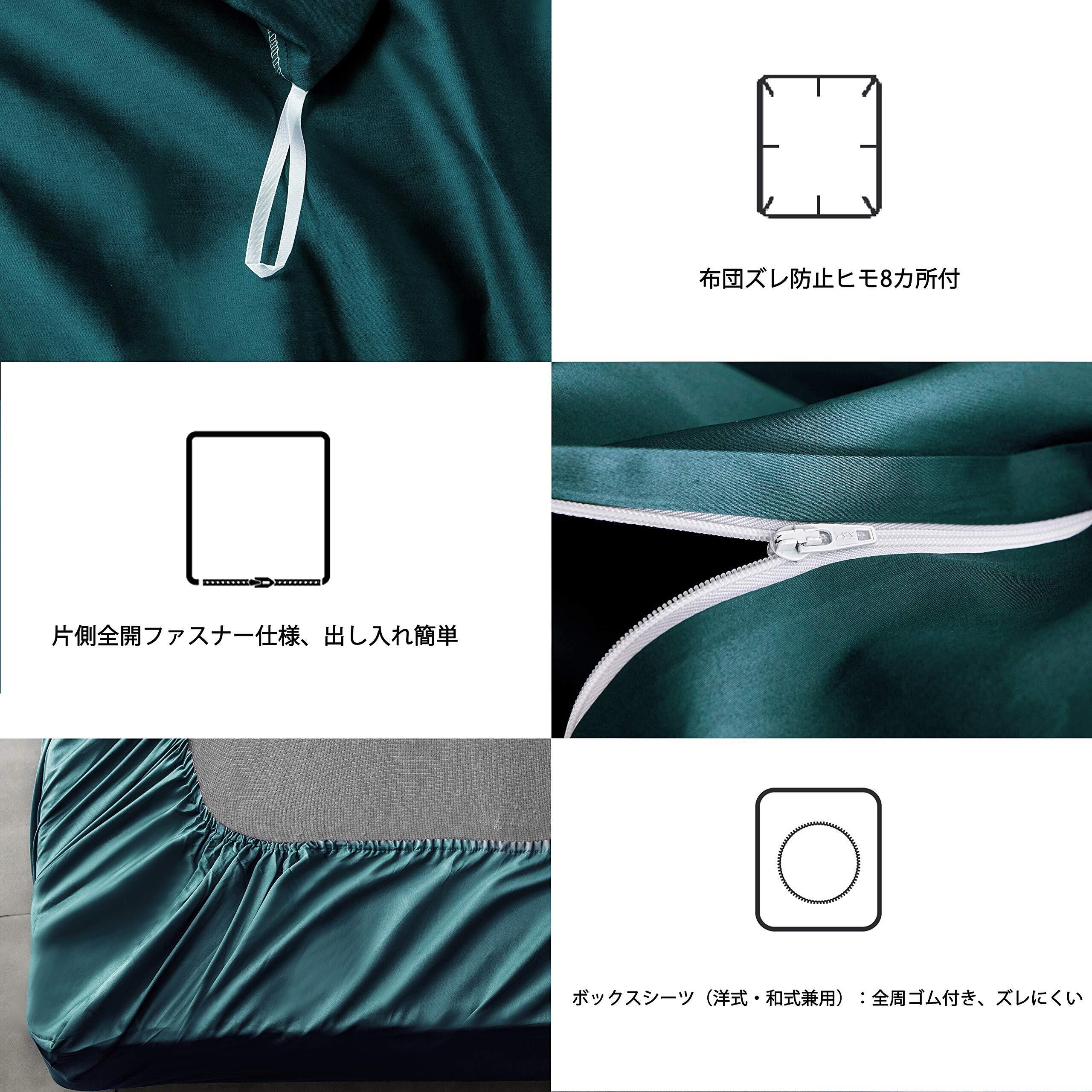 【心を込めた設計】枕カバー:合わせ式丨掛ふとんカバー:片側全開仕様とYKKファスナーを採用、スムーズな開閉と出し入れを実現、8カ所の内ヒモ付きでズレにくい丨ボックスシーツ:全周ゴム付き、和洋兼用。なお、リボン付きギフトボックスで包まれ、自宅用はもちろん、新築祝い、お引越し祝いにもぴったりなプレゼントです。