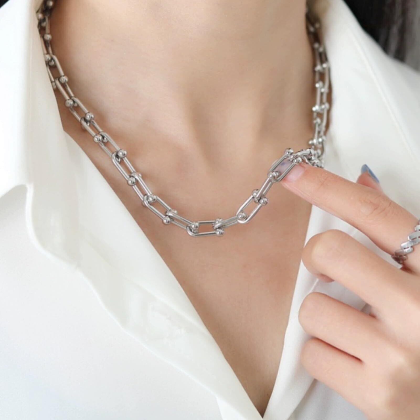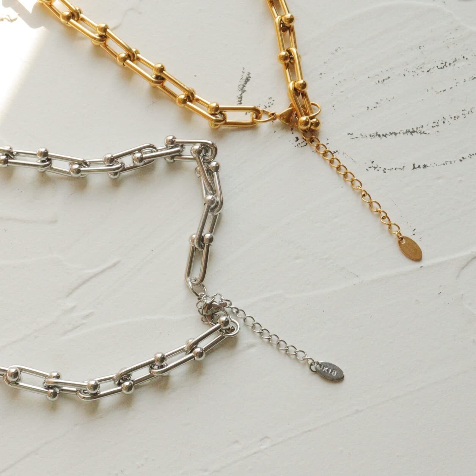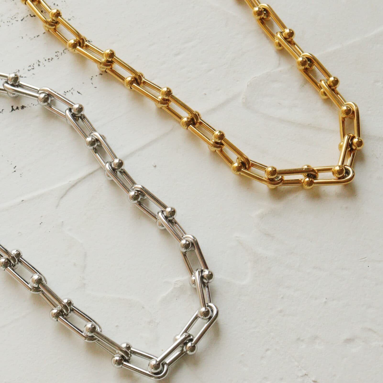 このネックレスは、太めのチェーンが特徴で、ゴールドとシルバーの2色からお選びいただけます。サージカルステンレスを使用しているため、非常に耐久性が高く、輝きも長く保ちます。シンプルなデザインは、どんなスタイルにも馴染みやすく、ファッションの幅を広げてくれることでしょう。