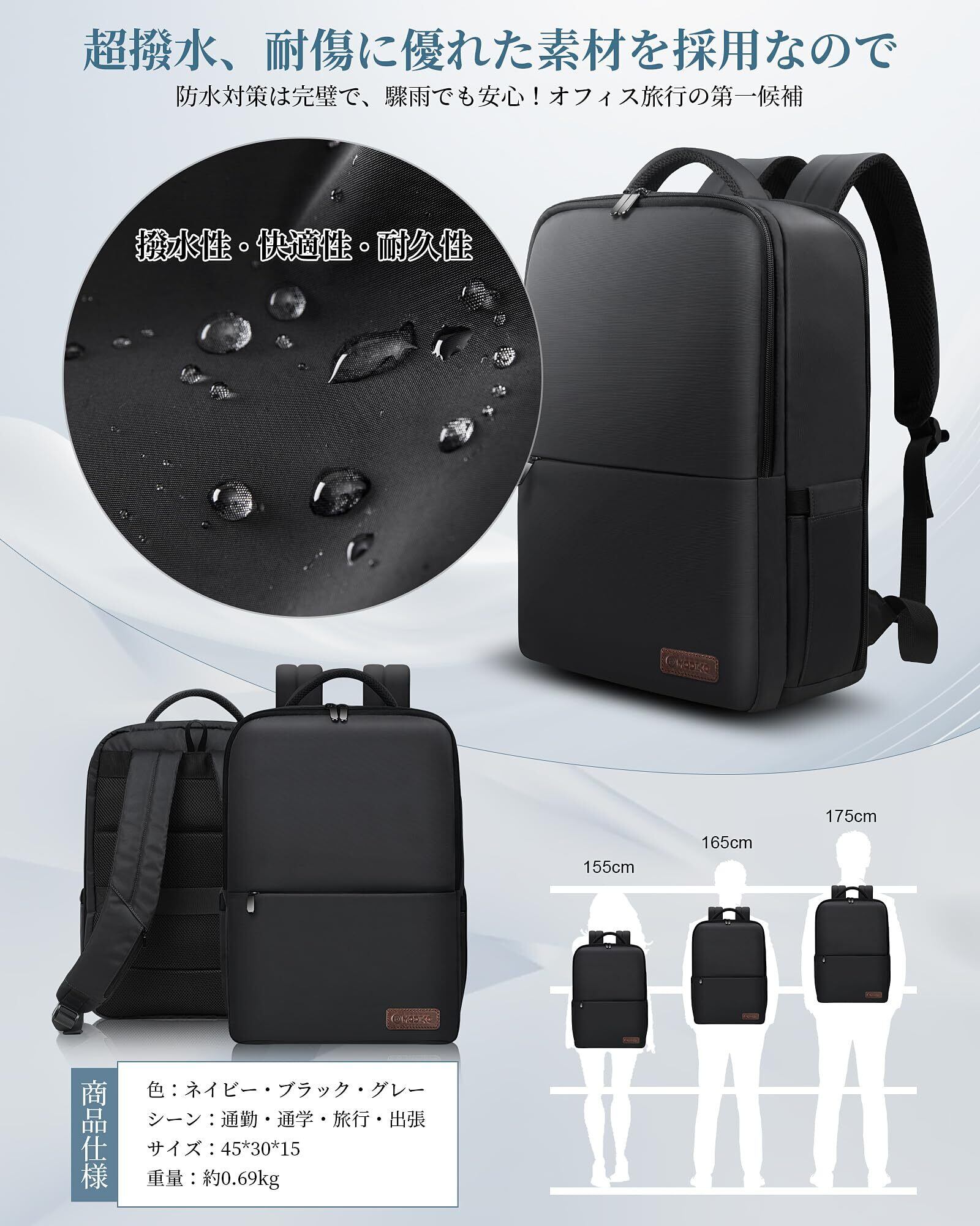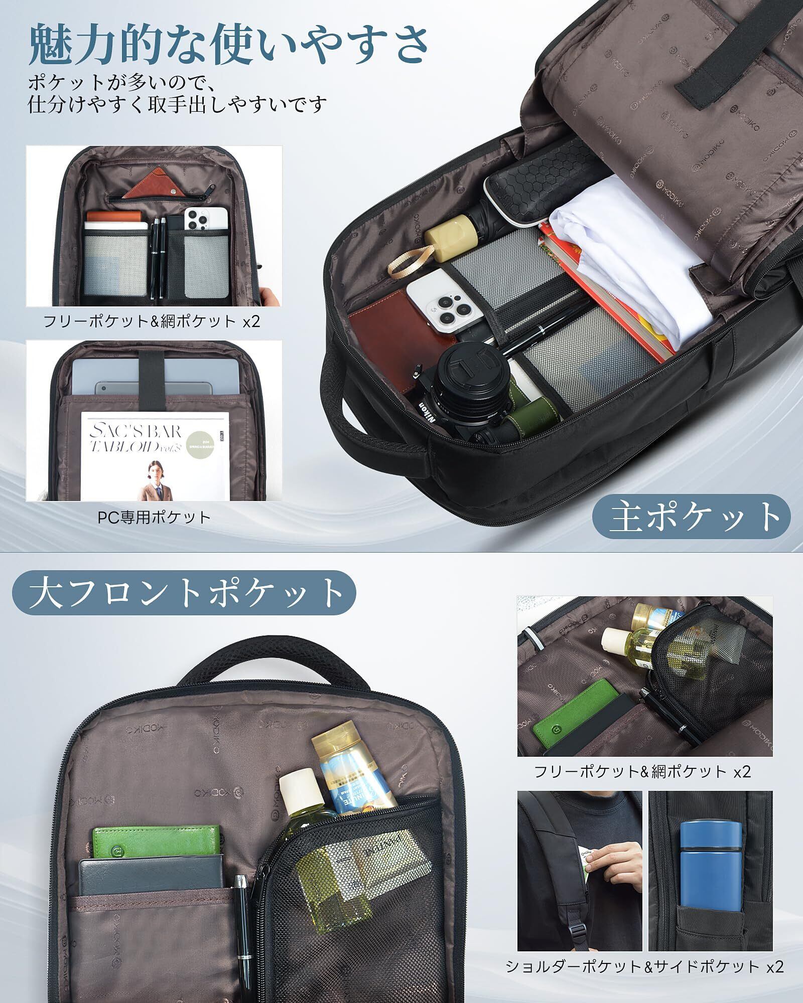 [Modiko] ビジネスリュック メンズ リュック 大容量 防水 撥水 リュックサック バックパック 15.6インチPC パソコン 軽量 A4収納可 耐久性 通勤用 就活 出張 高校生