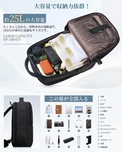 【大容量】サイズは約42cm×32cm×18cm(約25L)リュック 大容量。15.6インチのノートパソコン、A4サイズの書類、iPad、衣類などを収納でき、出張や1泊2日の旅行に最適なビジネスリュックです。