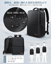【優れた撥水機能】リュックサック表面素材は傷などがつきにくい高密度の防水生地を使用していますので、耐摩耗性・耐久性を実現しました。小雨程度なら水滴の浸入を防ぎます。また、ビジネスリュックの背面とショルダー部分には通気性の良いメッシュ素材を採用し、長時間使用しても背中が乾燥します。