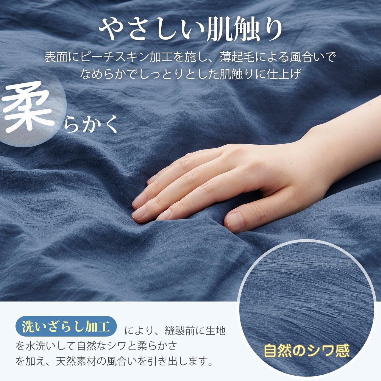 【数量限定】クモリ(Kumori) 掛け布団カバー シングル 洗いざらし 吸湿速乾 素肌にやさしい 柔らかい しっとり ピーチスキン シワ加工 丸洗いOK オールシーズン 布団カバー 掛ふとんカバー (シングル・150X210cm ネイビー)