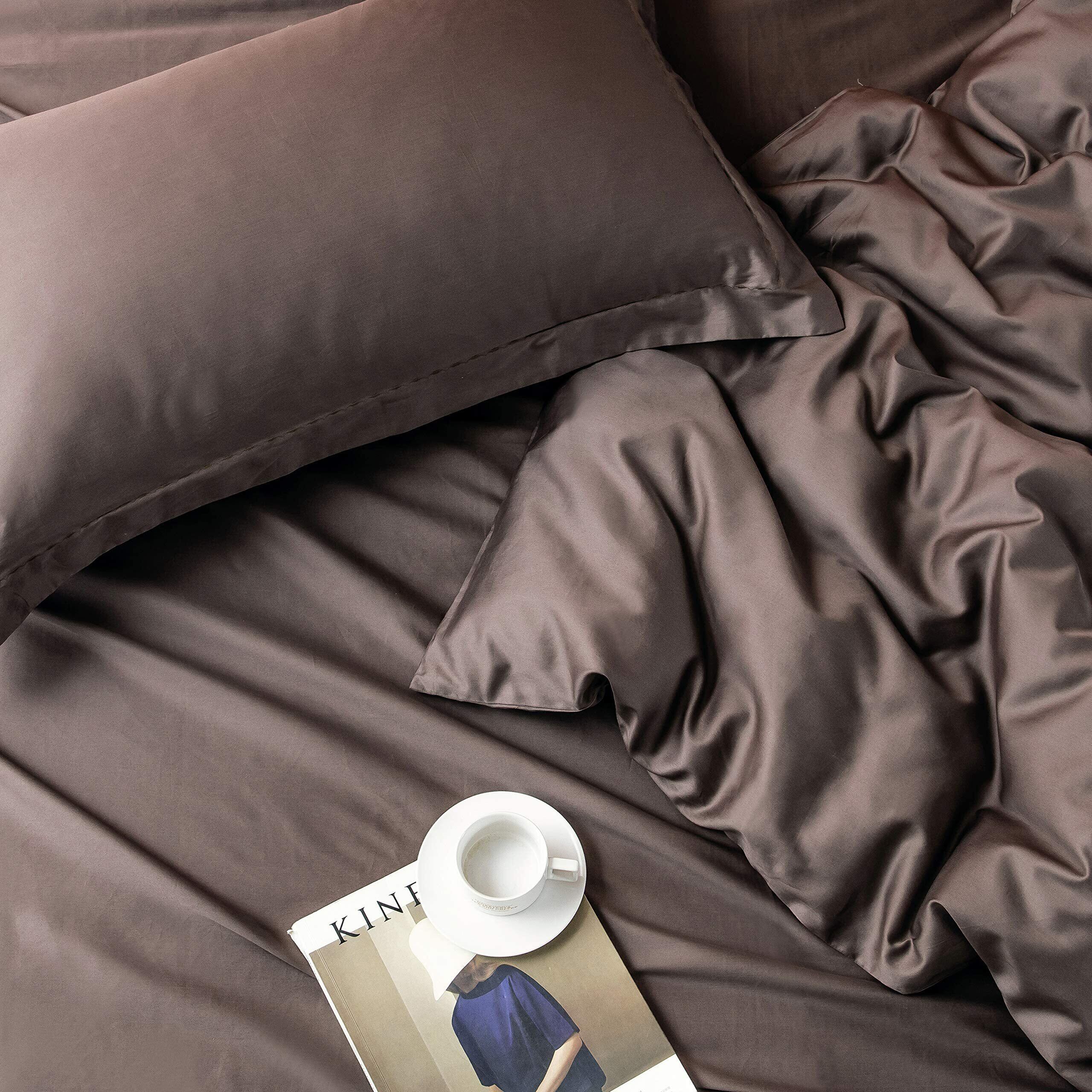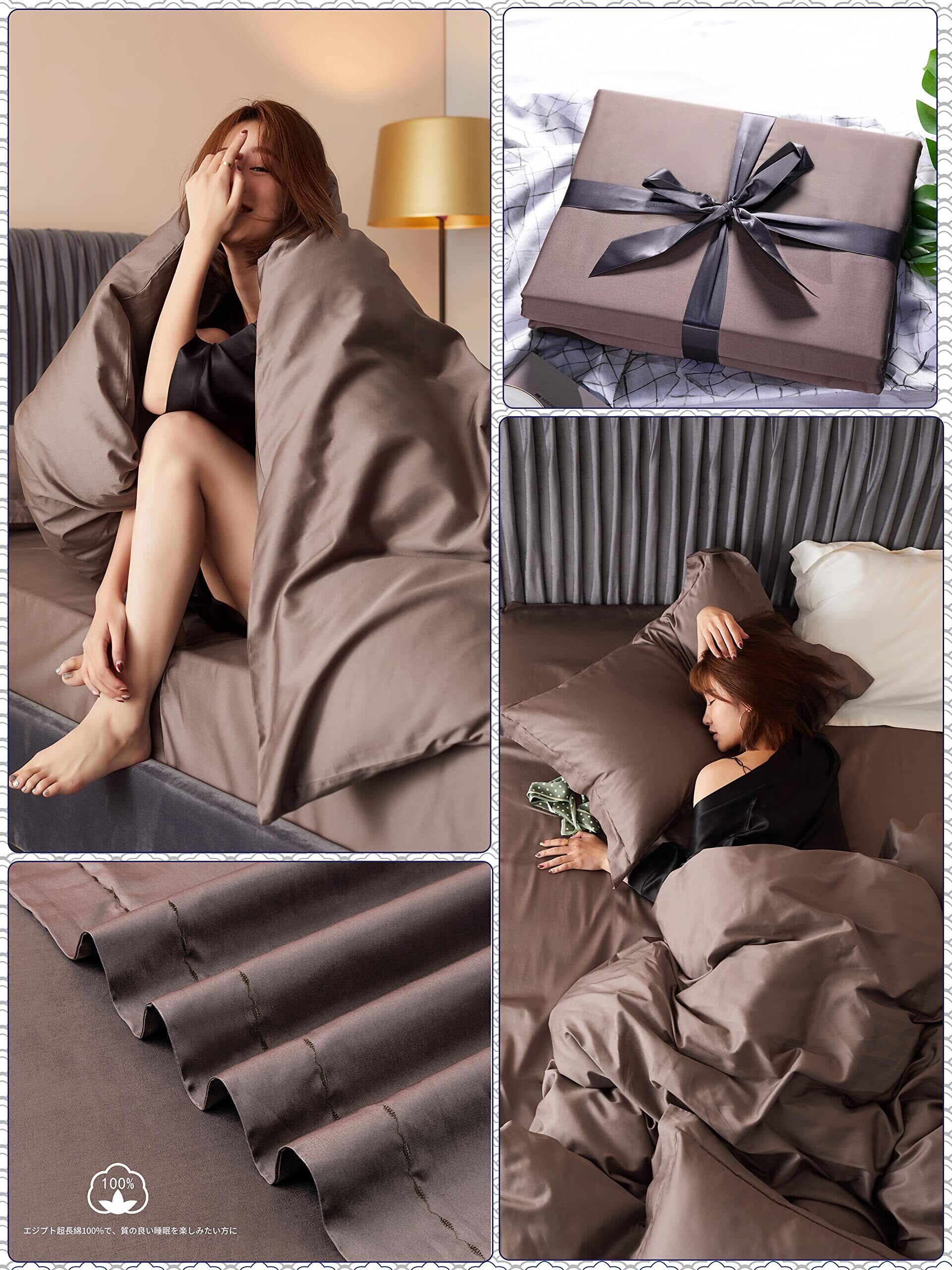 MILDLY 布団かばーセミダブル 4点セット エジプト超長綿100% 布団カバーセット セミダブル:掛け布団カバー ボックスシーツ 枕カバー*2 / 300TCサテン調:肌ざわりが良い 通気性に富んで 毎日の快眠で元気に過ごしたい方に(SD・ディープトープ)