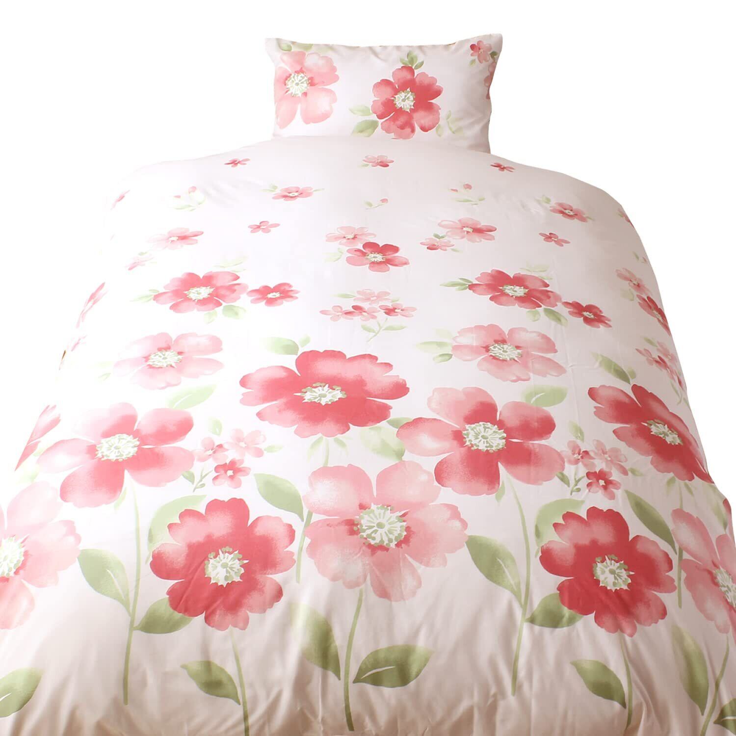 メリーナイト 掛け布団カバー 「水彩フラワー」 ピンク シングルロング 約150×210cm 両サイドファスナー ふとんが入れやすい 洗える シワになりにくい FF12113-16