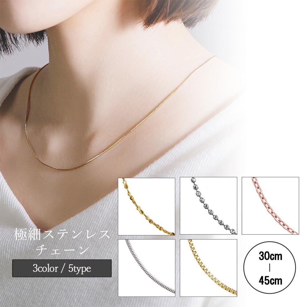 【バリエーション豊富】チェーンの種類がスネークチェーン、あずきチェーン、ボックスチェーン、ボールチェーン、満点星チェーンの5種類、カラーがシルバー、ゴールドの2色の計10種類からお選びいただけますので貴方のお気に入りがきっと見つかります。シンプルに着用したり、お手持ちのチャームなどと合わせてみたりとお好みのスタイルでお楽しみいただけます。 【長さが自由に調節可能なアジャスター付き】 アジャスターで長さを自由に調節可能(30cm、35cm、40cm、45cm)