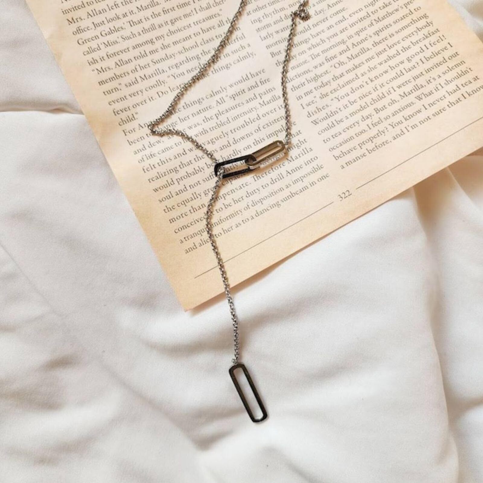 「この『[Moonstan] ネックレス』は、スタイリッシュで洗練されたデザインが特徴のロングネックレスです!シンプルでありながら、存在感のあるゴールドとシルバーの組み合わせが、どんなコーディネートにも華やかさをプラスします。」