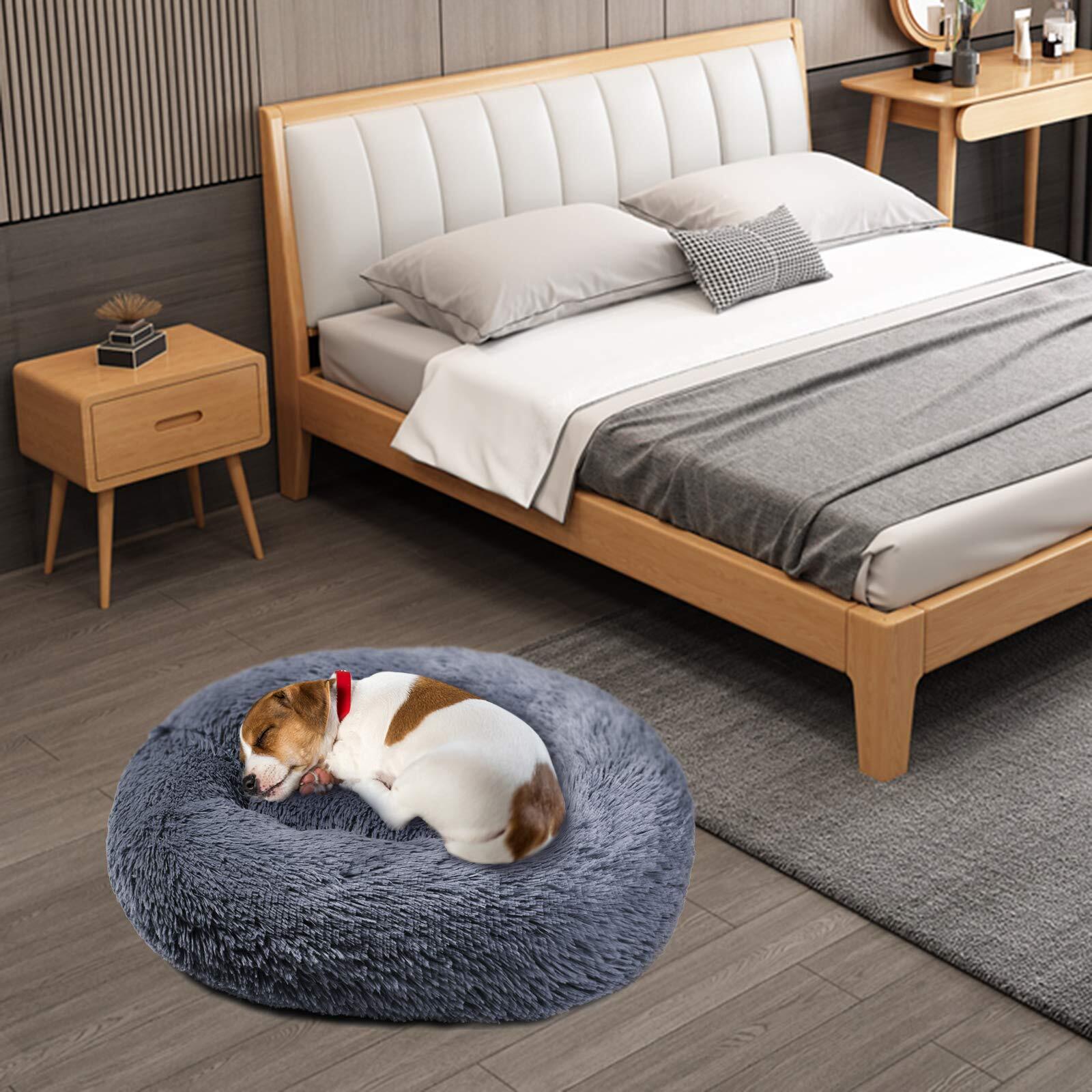 Aurako 50cm 犬ベッド 猫ベッド ふわふわ 丸型 クッション ドーナツペットベッド ぐっすり眠る 猫用 小型犬用 もこもこ 暖かい 滑り止め 防寒 寒さ対策 洗濯可能 子犬 猫用 サイズ選択可 ダークグレー