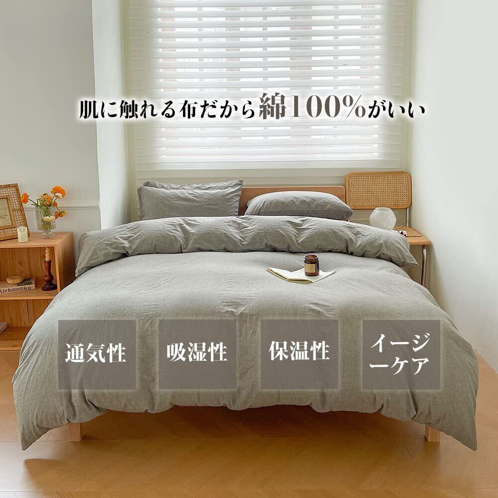 掛け布団カバー シングル オーガニックコットン 綿100% 掛けふとんカバー ふとんカバー 布団カバー 綿洗いざらし オールシーズン 無地 北欧 150*210CM 8ヶ所ヒモ付き 洗い替え 防ダニ 防シワ 速乾 通気 グレー