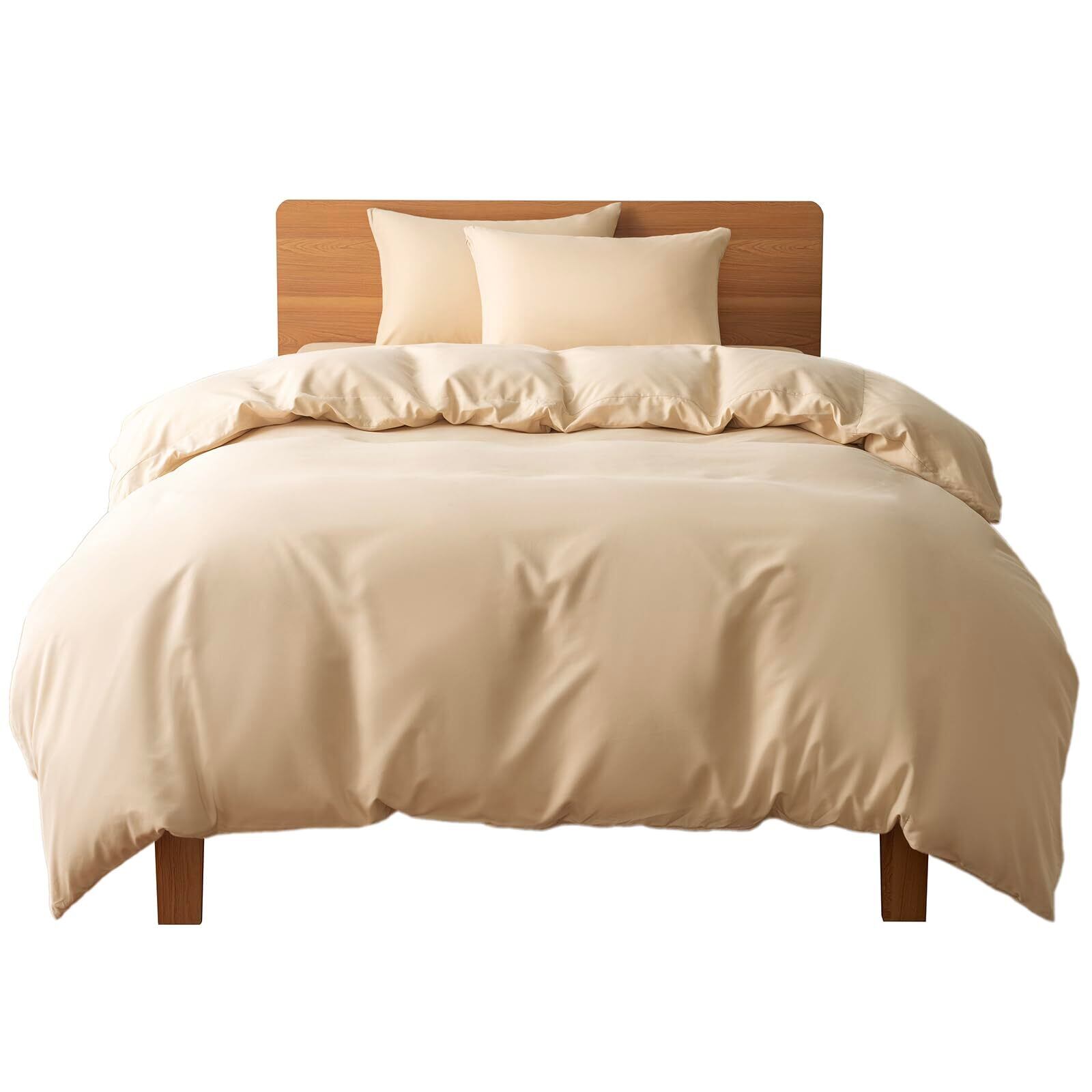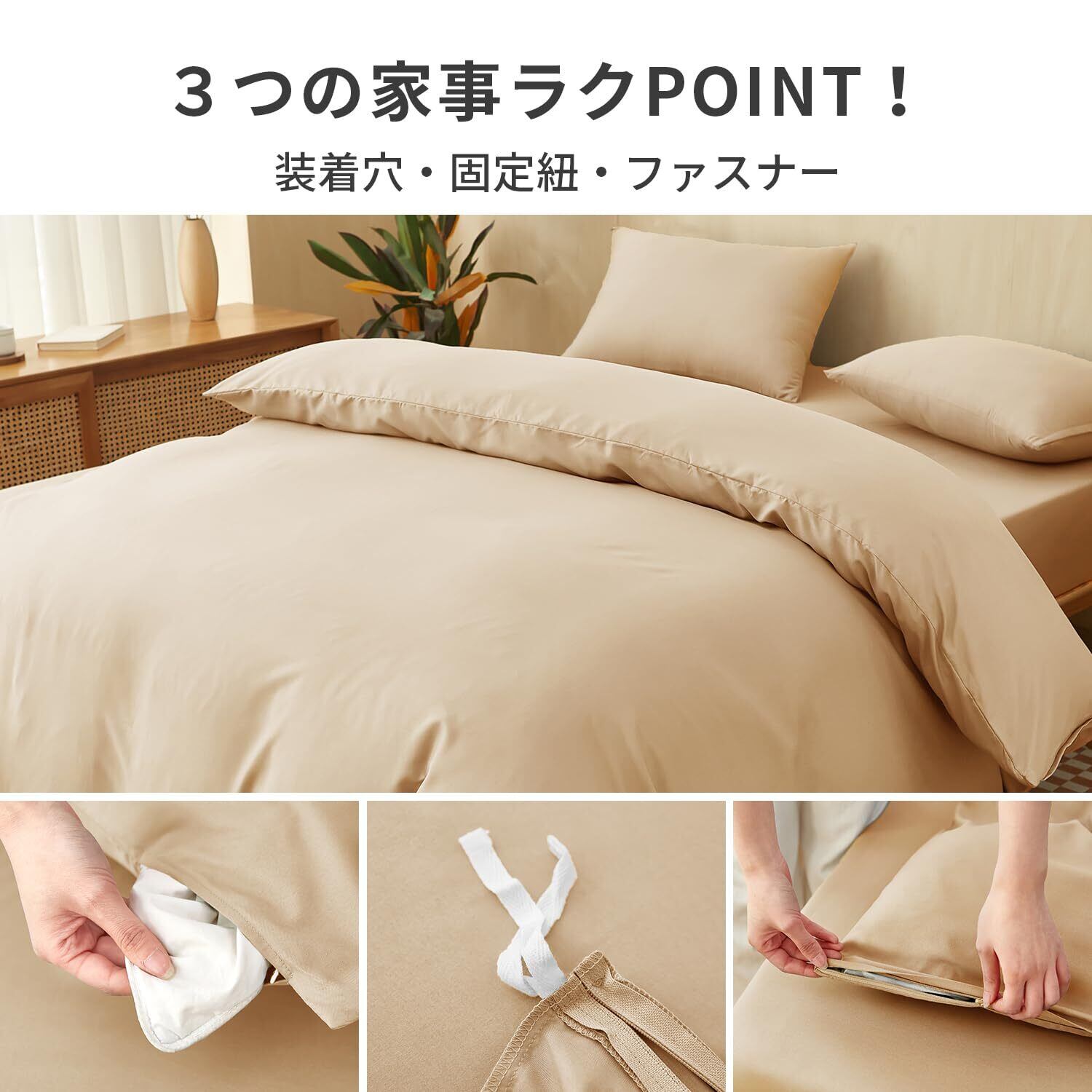 AZRA 掛け布団カバー シングル 150X210cm チャック付き おしゃれ オールシーズン ピーチスキン加工 通気 速乾 内側6ヵ所に紐付き 長辺全面ファスナータイプ 出し入れ簡単 ベージュ