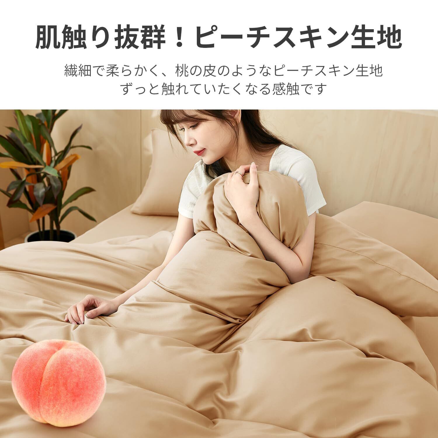 【新着商品】AZRA 掛け布団カバー シングル 150X210cm チャック付き おしゃれ オールシーズン ピーチスキン加工 通気 速乾 内側6ヵ所に紐付き 長辺全面ファスナータイプ 出し入れ簡単 ベージュ