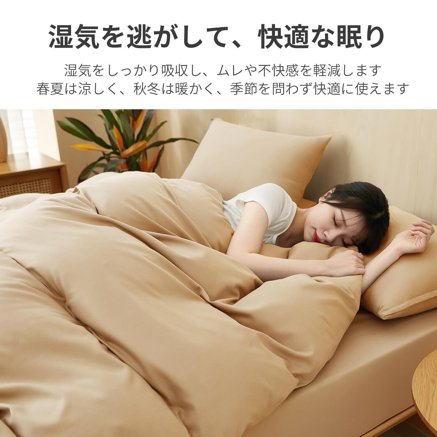 <通気性と速乾性>: ポリエステル 100%を使用するため、優れた通気性を持っています。睡眠中に生成された水分を吸収し、寝汗をかいても快適です。毛玉にりにくい、シワになりにくい。洗った後は素早く乾かすことができます。真夏から冬場までオールシーズンで快適にお使いいただける掛け布団カバーです。