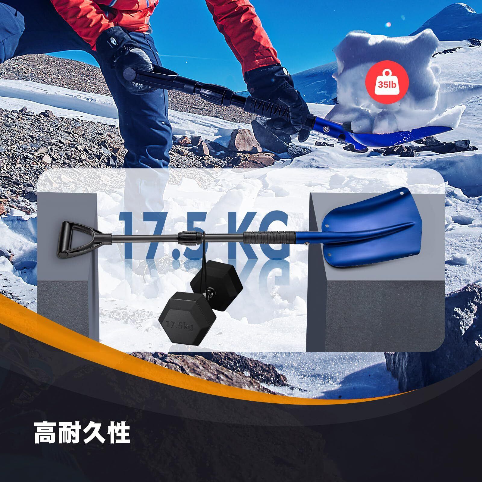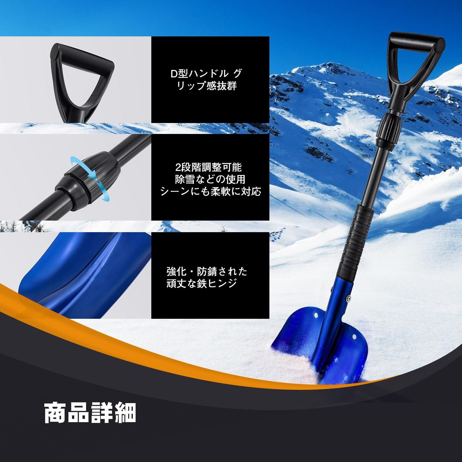 【頑丈で軽量・耐久性UP】当社雪かきスコップはアルミニウム製のシャベルと強化されたハンドルは頑丈で軽量です。雪、泥、砂などを気軽にかき出すことができます。強度の高い鉄製ヒンジにより、また防錆処理を施してありますので、長時間使用しても変形・錆びるしたり壊れたりすることはありません。