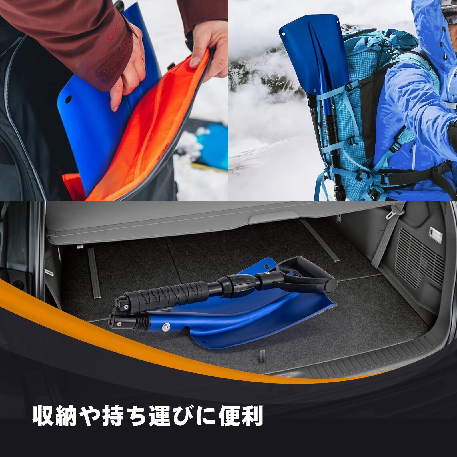 雪かきの他にも、土や砂の掘削、キャンプやアウトドアでの使用にも重宝します。アルミ合金製の丈夫な作りで、様々な用途に対応するマルチツールです。