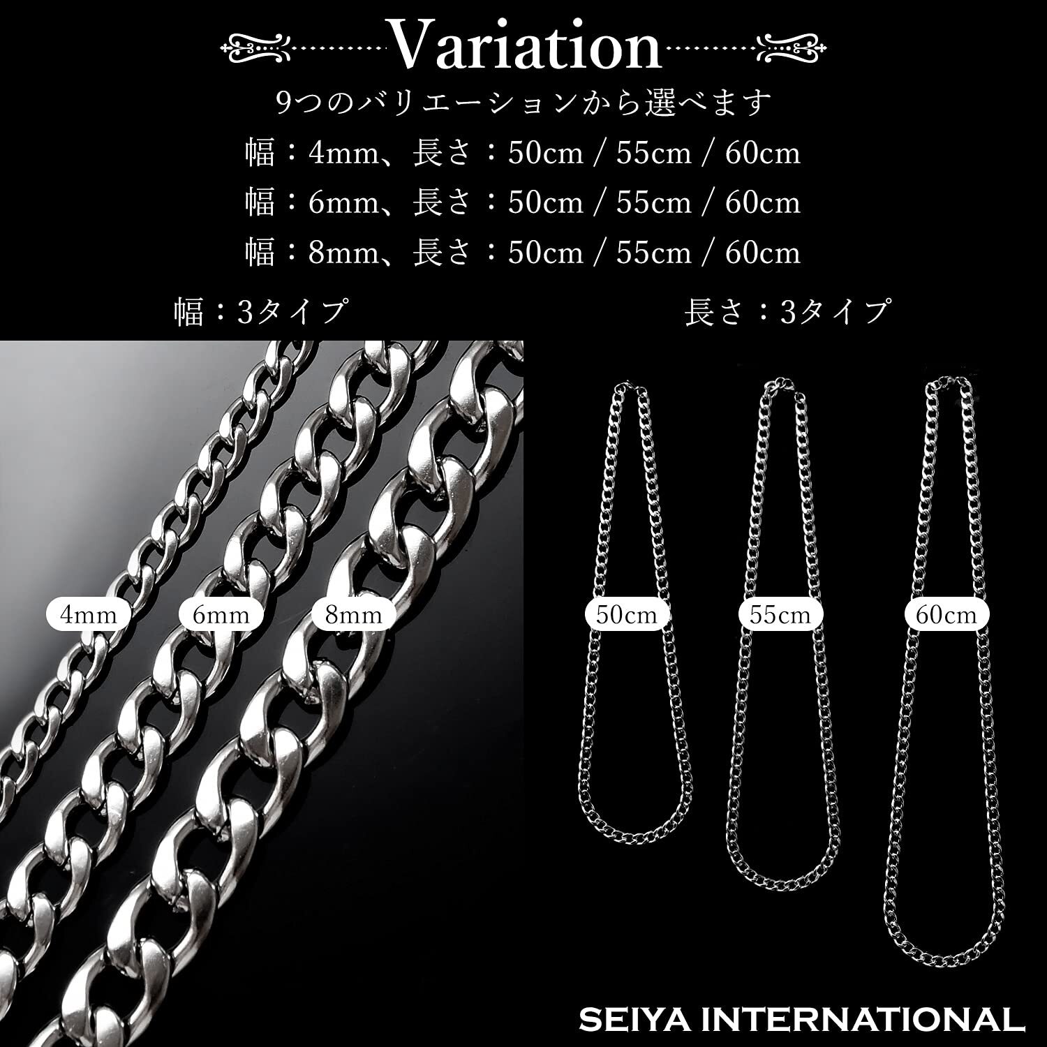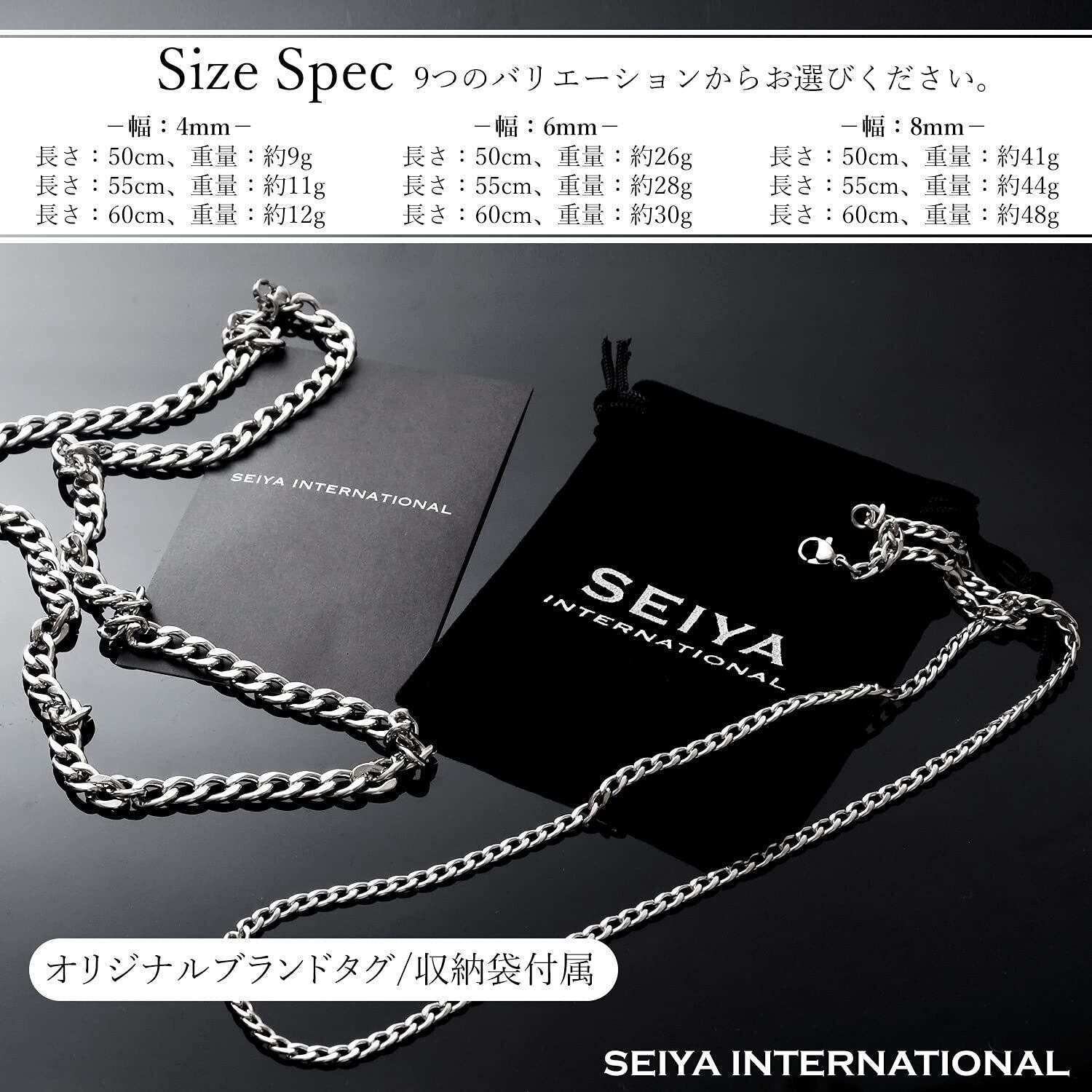 [SEIYA INTERNATIONAL] ネックレス メンズ アクセサリー チェーンネックレス チェーン 喜平ネックレス ステンレス (幅:4mm、長さ:50cm)