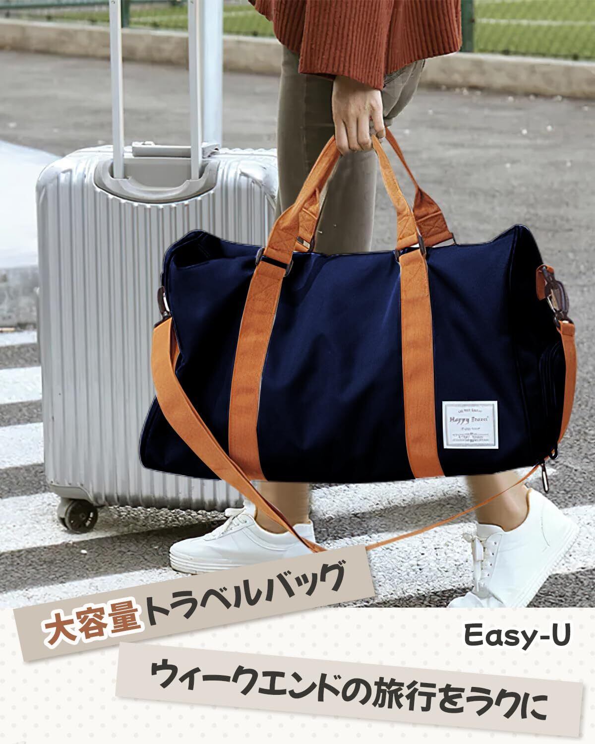 「この『Easy-U スポーツバッグ』は、あなたのアクティブライフをサポートするための理想的なバッグです!多機能でスタイリッシュなデザインが魅力で、ジムや旅行、日常使いにぴったりのアイテムです。」