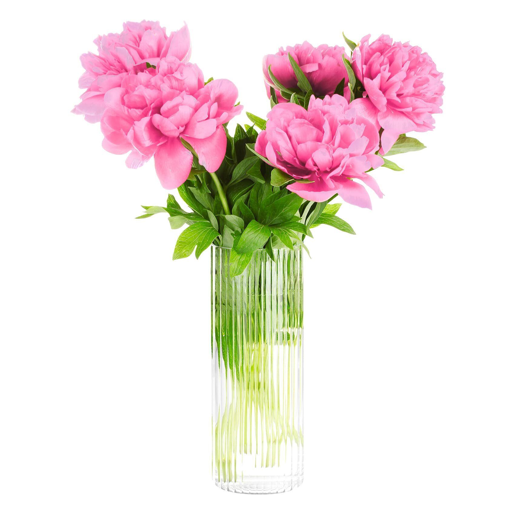 Annhua 花瓶 ガラス 高さ20cm 直径9cm 円柱 北欧 フラワーベース 枝物 一輪挿し 生け花 ガラスベース シンプル花器 水替えしやすい インテリア装飾 クリア