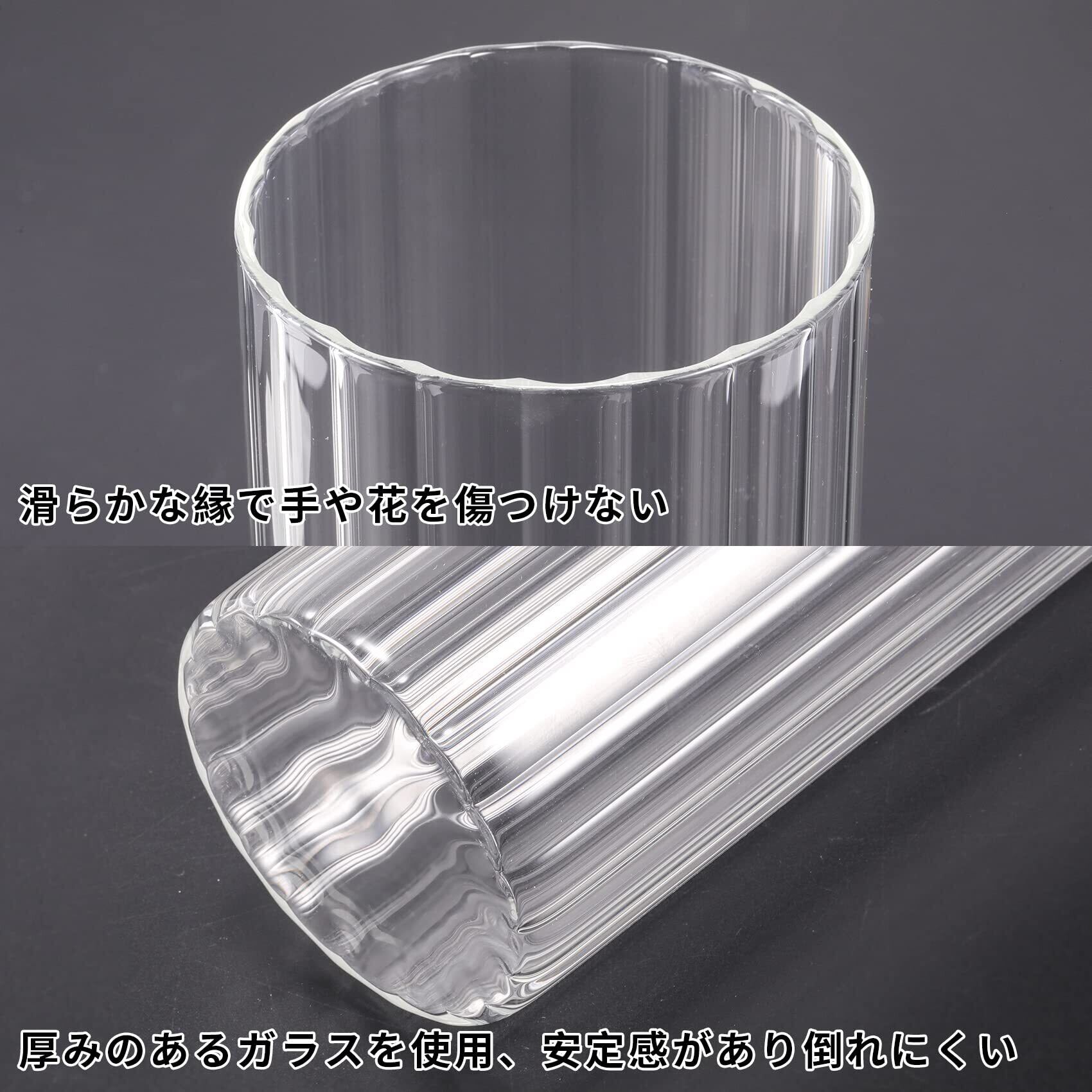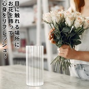 花を美しく飾る:透明感のあるガラス素材に、ストライプ状の凹凸を施したデザイン。おしゃれな花瓶は花の美しさを引き立て、清潔感と爽やかさを演出します。※ガラス製のため、落下や衝撃にはご注意ください