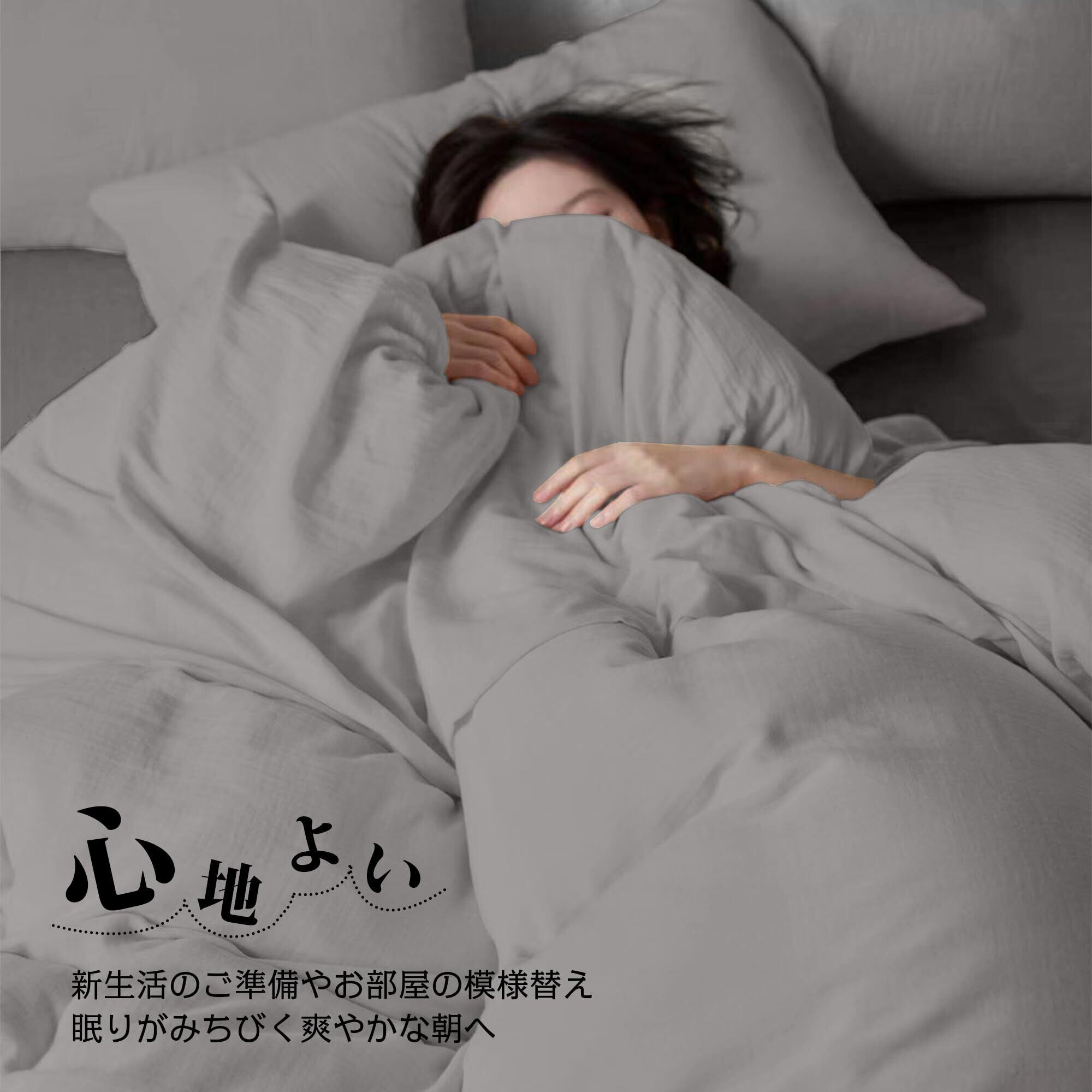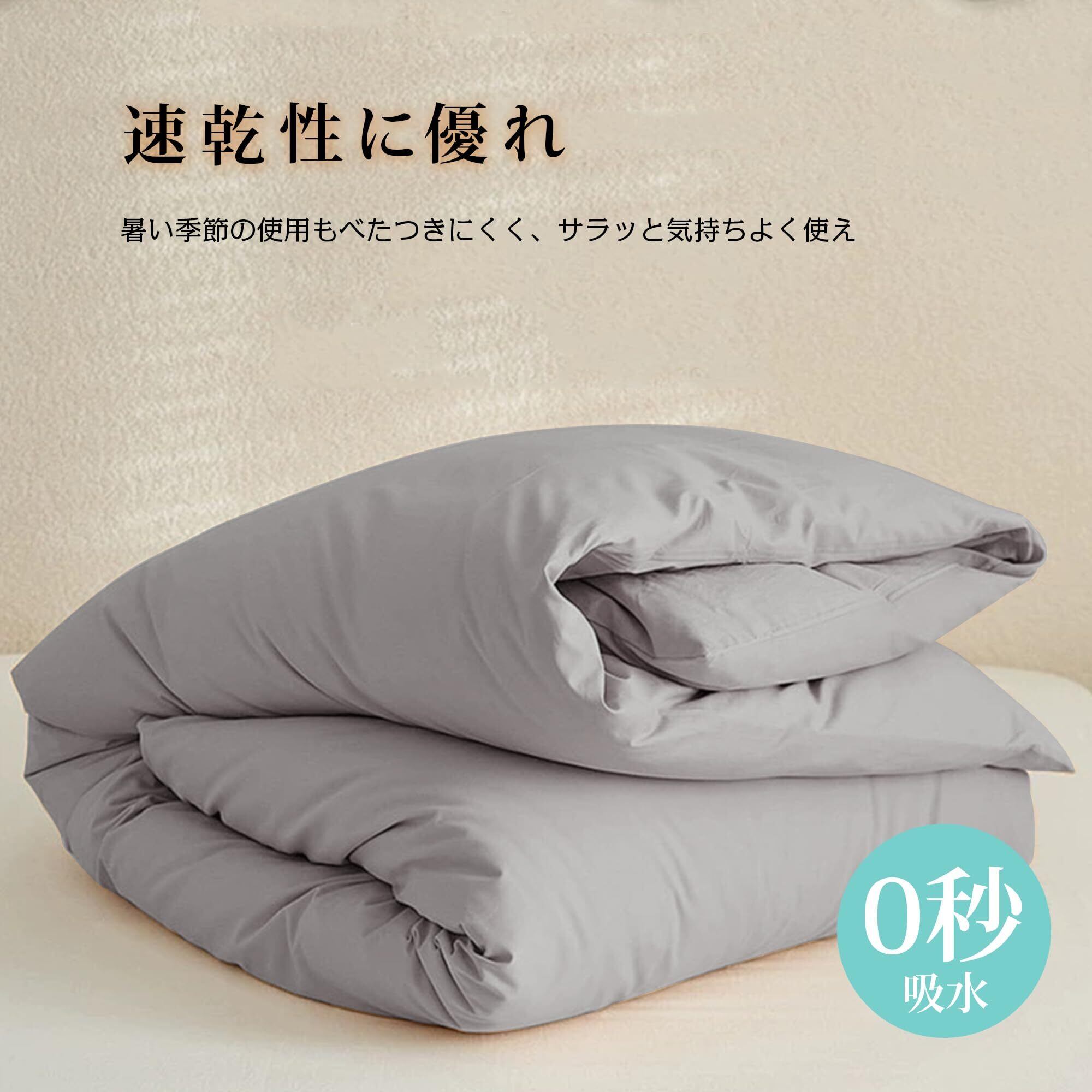 【速乾性に優れ 0秒で吸水】かけ布団カバーは優れた吸湿性・通気性に優れ、汗をかいてもベタつかずサラサラ感を保ち、乾きも早いです。サラッとした肌触りでベタつきません。しっとりと肌に触れると心地よく、毎日快適に眠れて、一年中お使いいただけます。