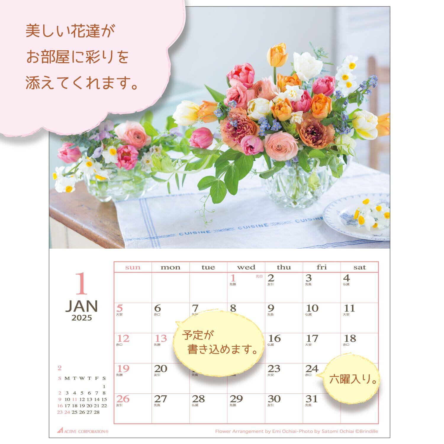 アクティブコーポレーション 2025年 カレンダー 壁掛け Flowerマンスリー 25ACL-07 2025年 1月始まり