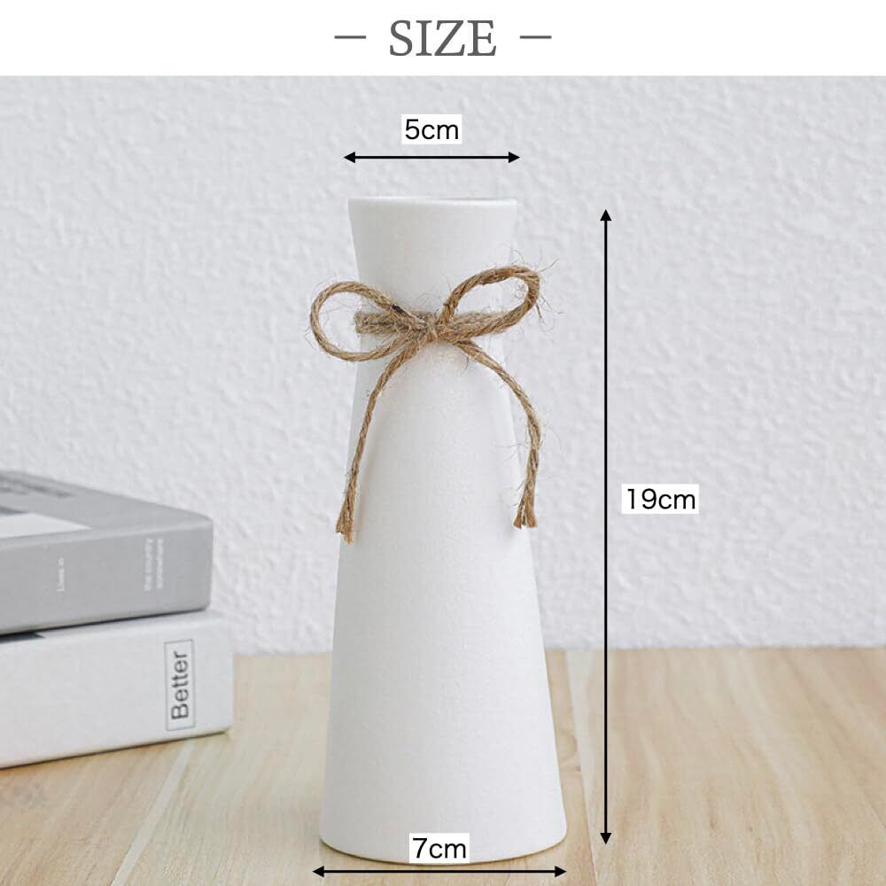 +kuRo 花瓶 フラワーベース 陶器 北欧 おしゃれ 大きい インテリア 花器 生花 ドライフラワー セラミックス (19cm, ホワイト)