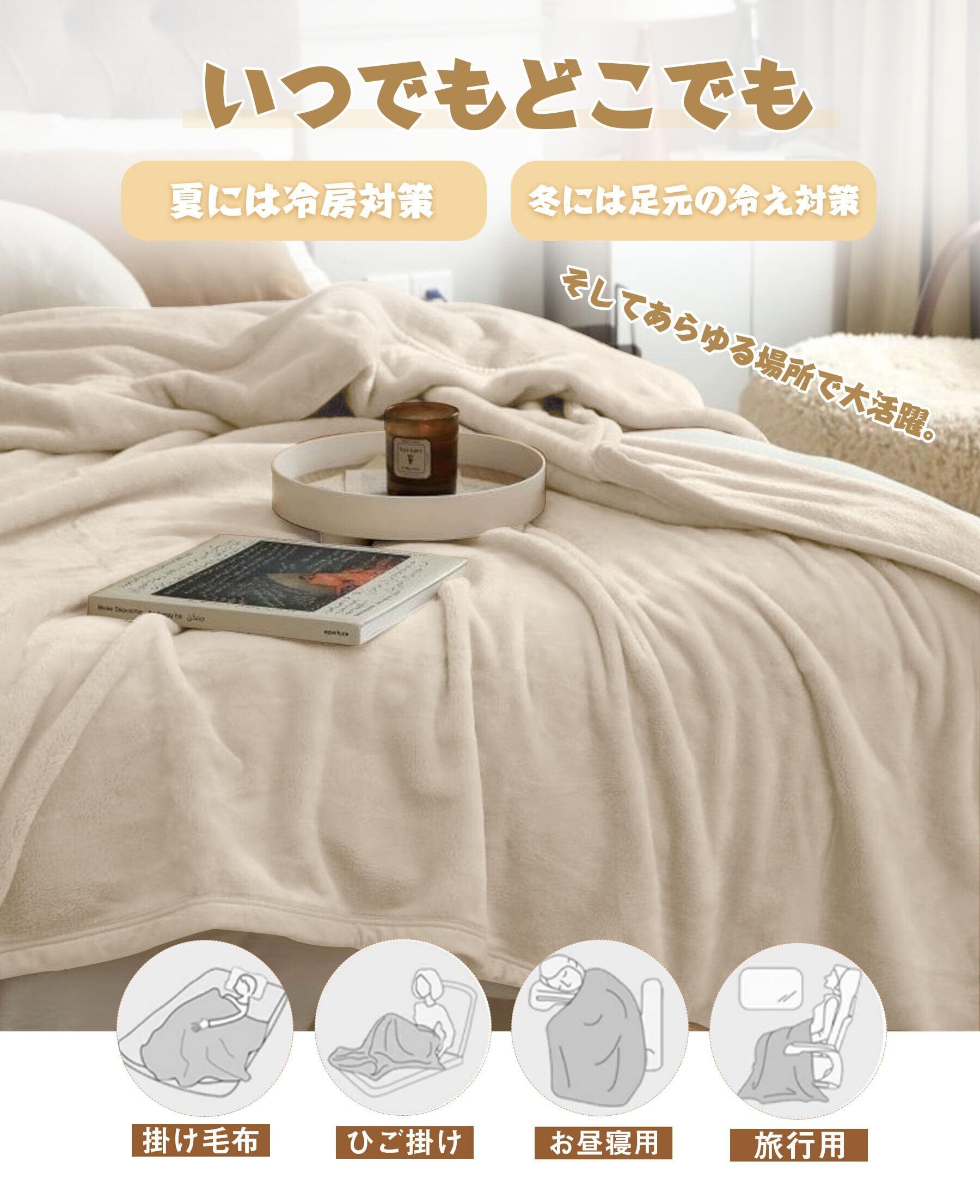 【様々な用途毛布】このブランケットはどんなお部屋にも合わせやすい無地なデザインです。ボリューム感と程良い高級感が感じられる質感で、カジュアルからフォーマルまで、男女ともに使いやすい掛け毛布になります。オフィスで昼寝毛布として、冷え対策として、旅行やソファの上や車内用毛布、またキャンプ等のアウトドア活動においても活用いただけます。