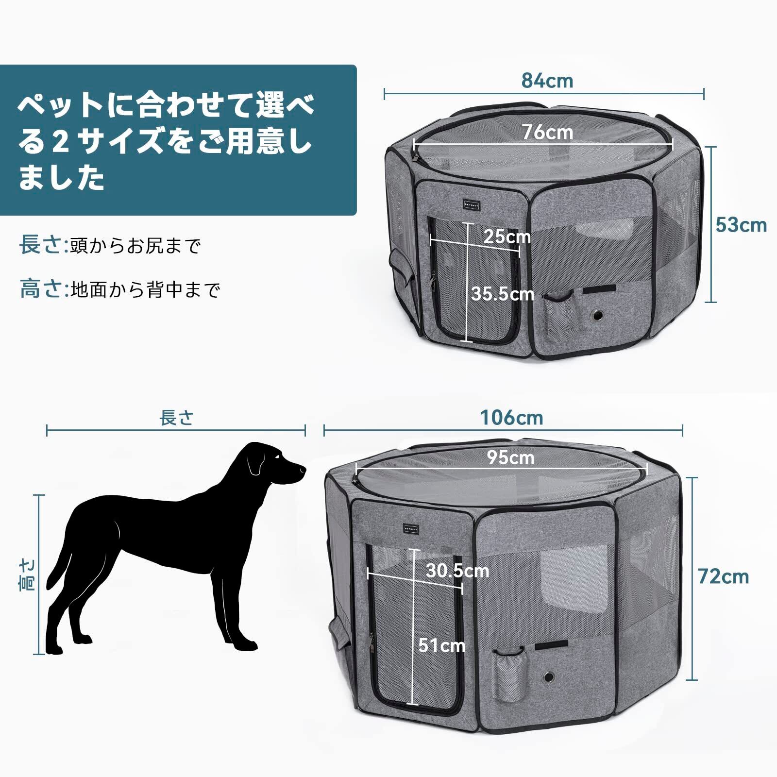 【2022最新】Petsfit 犬 サークル ペットサークル 八角形 ドッグハウス 【パッと開いてすぐ使える】 猫の産屋 猫の分娩室 折りたたみ 犬猫兼用 メッシュ 屋根付き 軽量 収納バッグ付き 部屋のインテリアに馴染み キャンプ アウトドア お出かけ用品 中小ペット (Mサイズ グレー) | nico3588