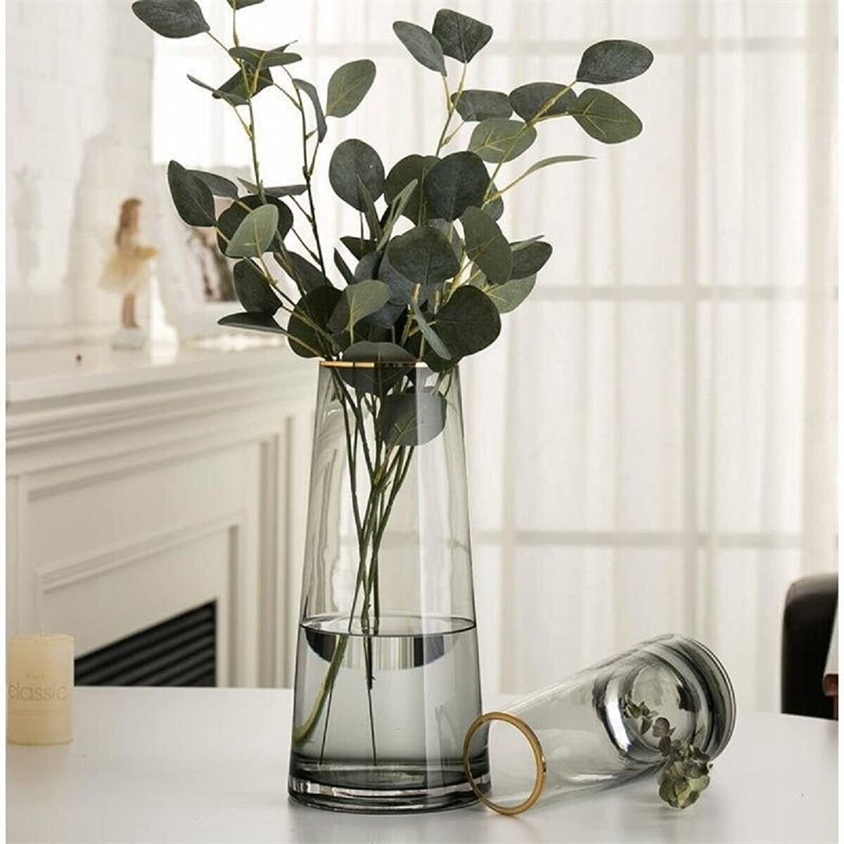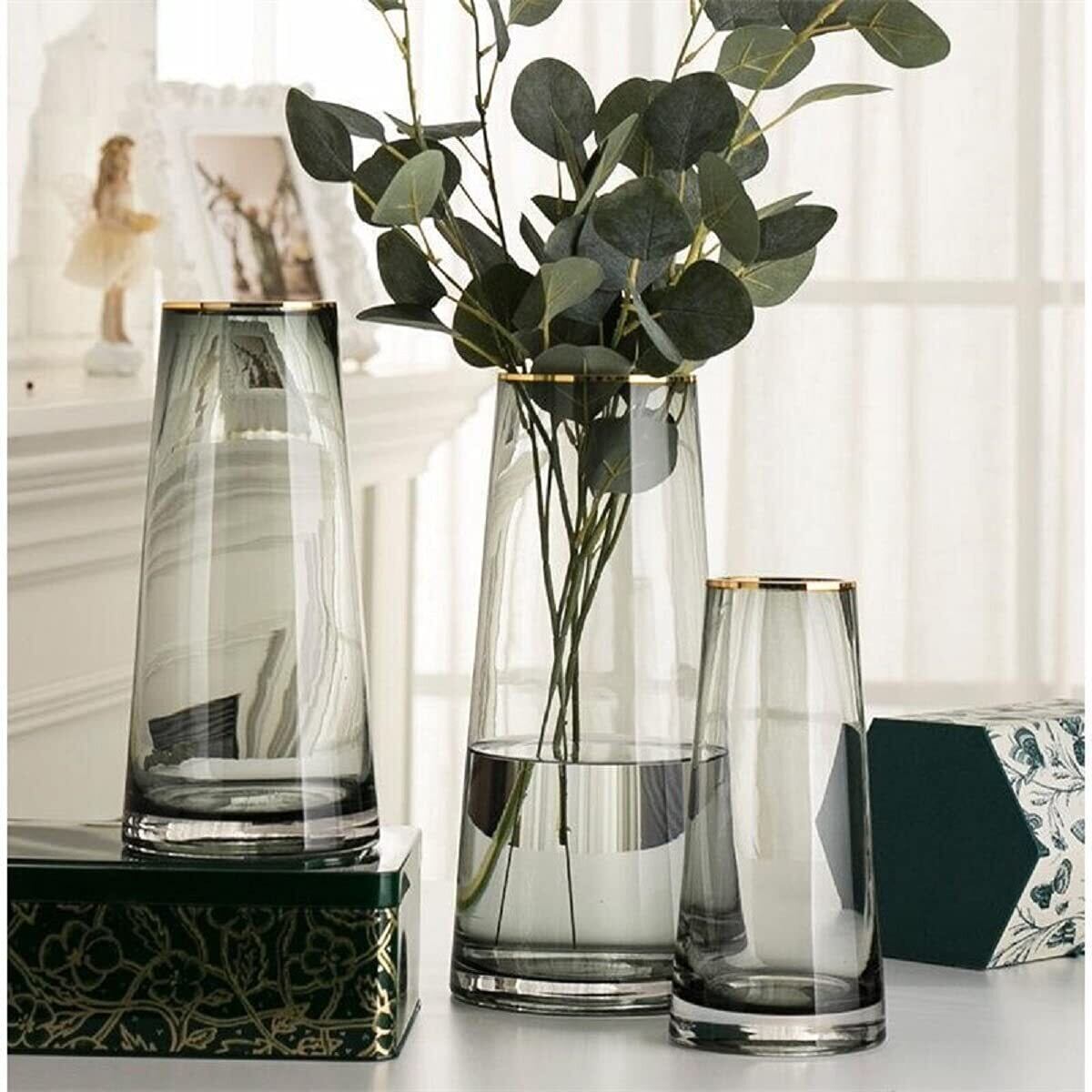 【新春セール】ガラスベース 花瓶ガラス 花器 22cm フラワーベース ガラスボトル 透明 北欧 アレンジ インテリア 水栽培 生け花 造花 おしゃれ シンプル インテリア (hbbl-vase-grey-jinbian-25cm)