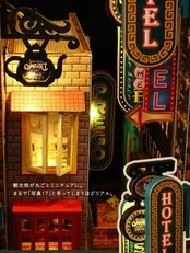 【在庫セール】moin moin ドールハウス ミニチュア 手作りキット セット 本棚 の中の小さな世界 本 ブック エンド スタンド 本棚 インテリア カフェ バイク 観光地 | LEDライト + アクリルケース + オルゴール 付属 2310dh401