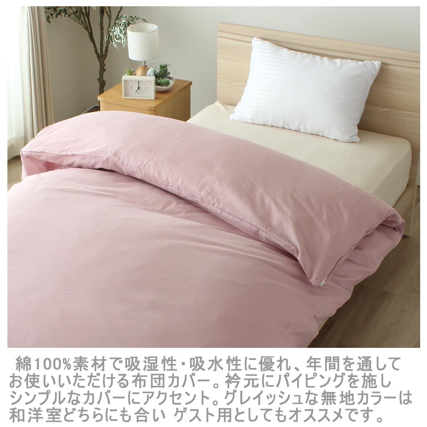メリーナイト 掛け布団カバー 無地カラー ピンクグレー シングルロング 約150×210cm 綿100% 衿元パイピング付き 吸湿性 通気性 天然素材 心地よい肌触り オールシーズン 洗える CT121511-16