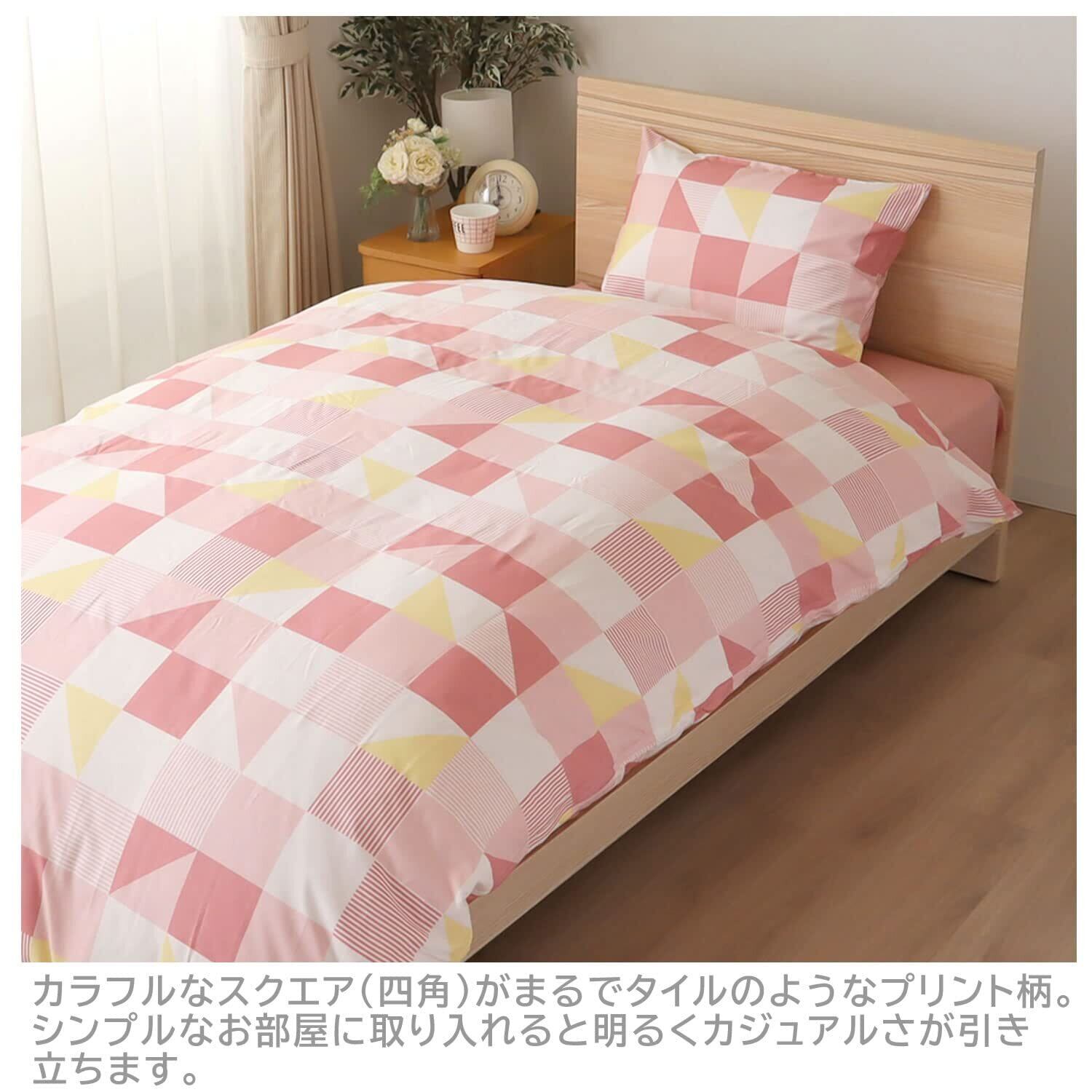 メリーナイト(Merry Night) 掛け布団カバー 「スクエア」 ピンク シングルロング 約150×210cm 両サイドファスナー ふとんが入れやすい 洗える 速乾 シワになりにくい FF12115-16
